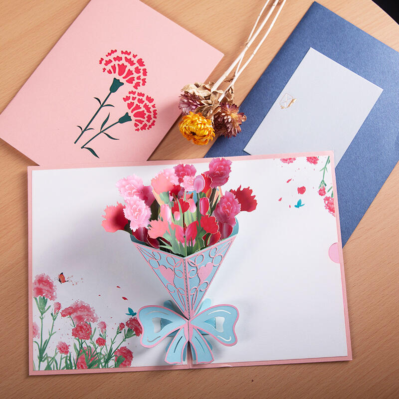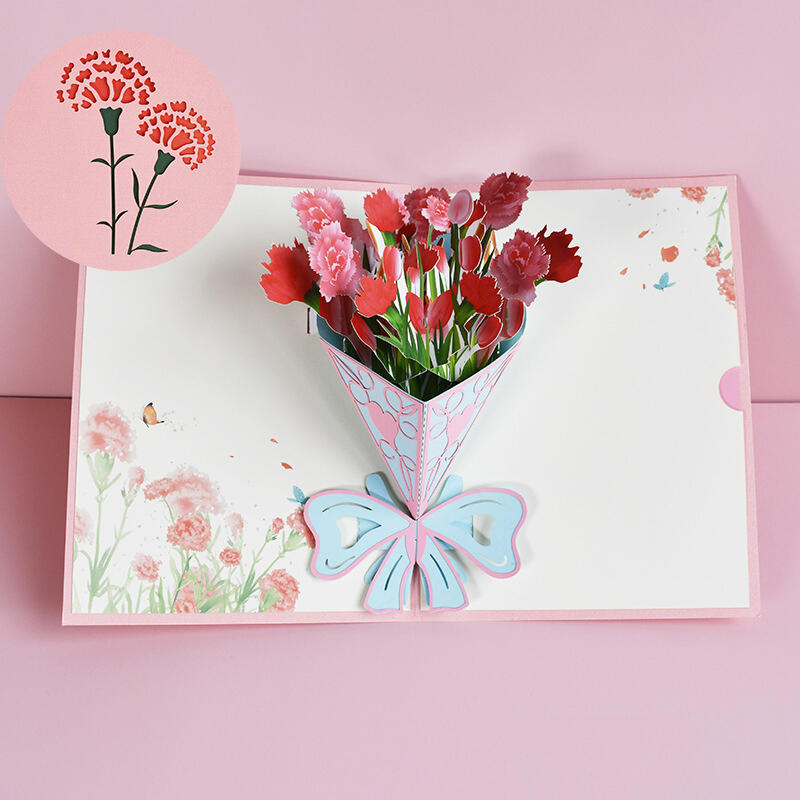 3D Carnation Bouquet Pop Up Card Beautiful Flower Design Gift for Her