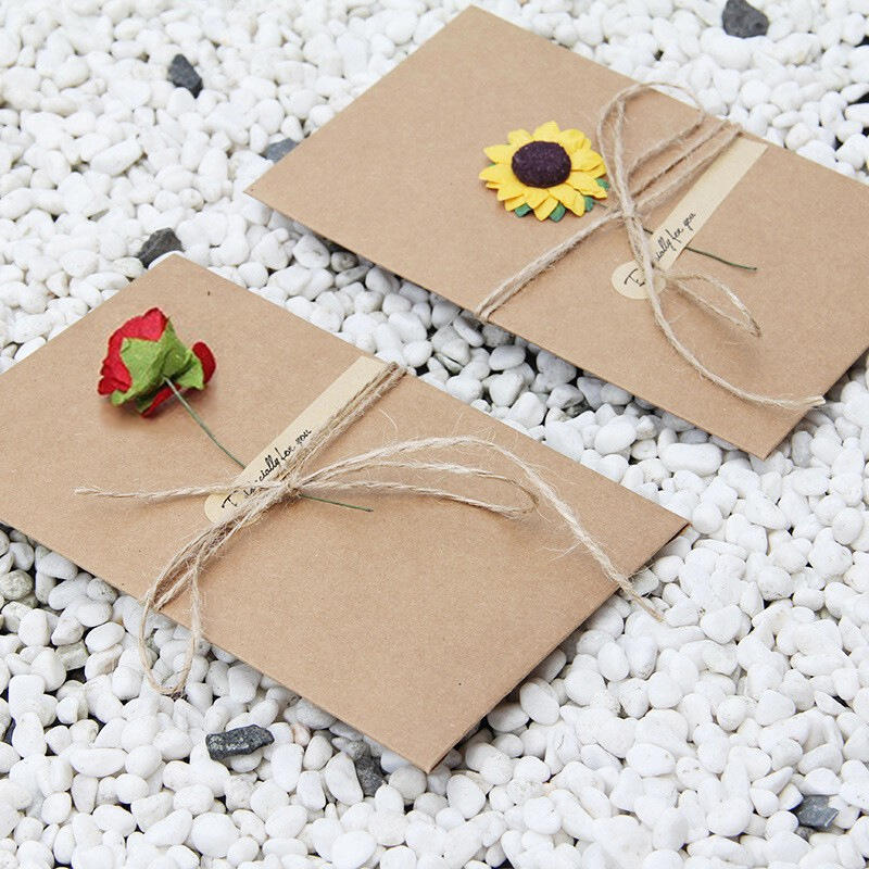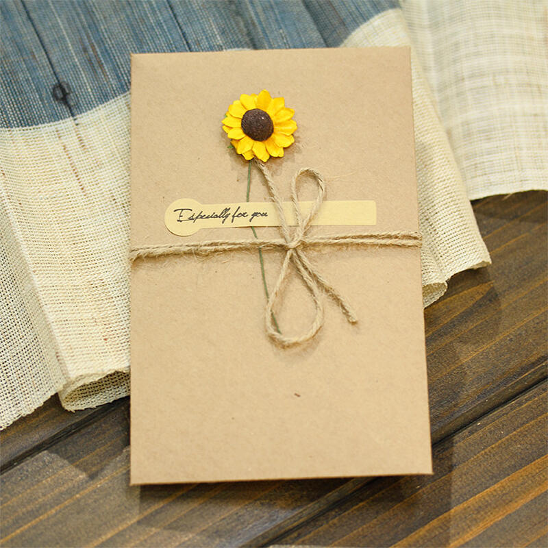 3D Paper Dried Flower Design Kraft Paper Card Elegant Gift for Loved One