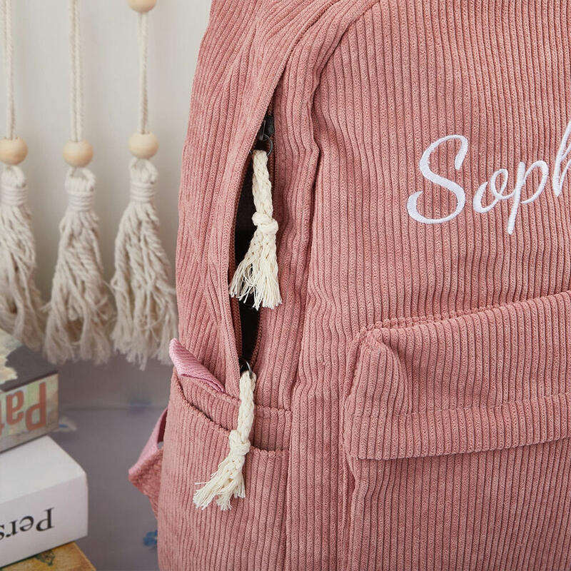 Introducing our premium personalized children's name backpack, a top-quality accessory that combines durability with a touch of whimsy. Each backpack is meticulously crafted with intricate embroidery of your child's name, the personalized name embroidery serves as a distinctive identifier, making it less likely to get misplaced. Treat your child to a backpack that not only carries their essentials but also carries their name proudly, adding a fun and personalized touch to every outing.