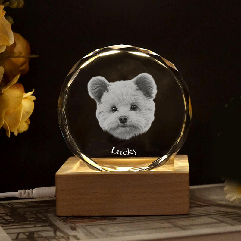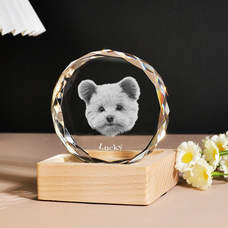 Custom Crystal Pet Photo Exquisite Desktop Decoration with LED Light Base Gift for Pet Owners