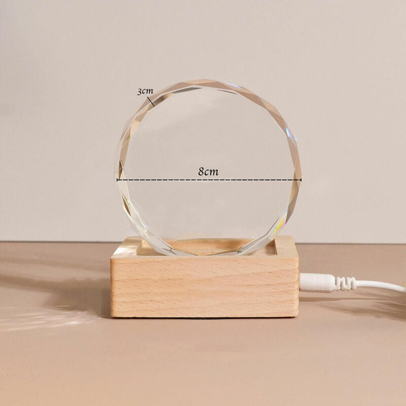 Crafted from premium crystal for its hardness and refraction, ensuring your engraved photo, name or date shines with lifelike clarity, enhanced by advanced engraving technology. The faceted edges amplify the reflection of light, creating a mesmerizing shimmer that dances around the room, perfect for a shelf, tabletop or as a decorative centerpiece. Upload your photo, text or date and our artisans use precision laser technology to engrave your design into the center of the crystal. Immortalize a love story, family bond or memory with a permanent laser-etched design. Perfect for weddings, anniversaries or memorial ceremonies. The smooth, simple lines blend beautifully with any decor style, making it a meaningful gift or a daily reminder of life's best moments.