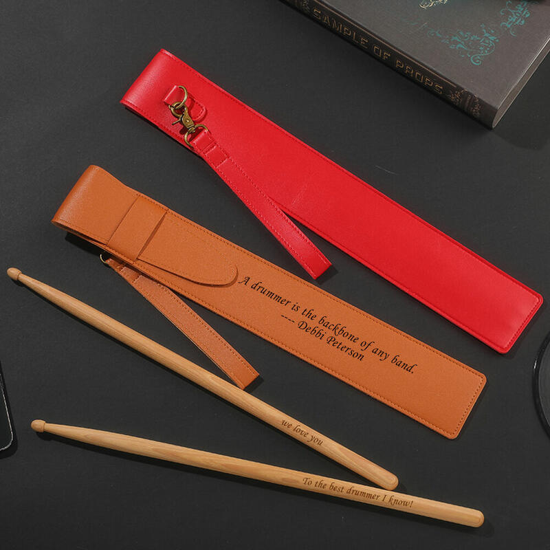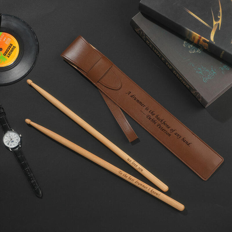 Custom Engraved Drumsticks & Leather Case Set Versatile Percussion Instruments Father’ Gift for Dad