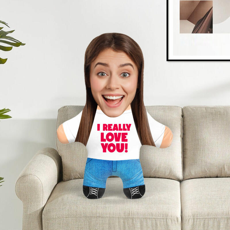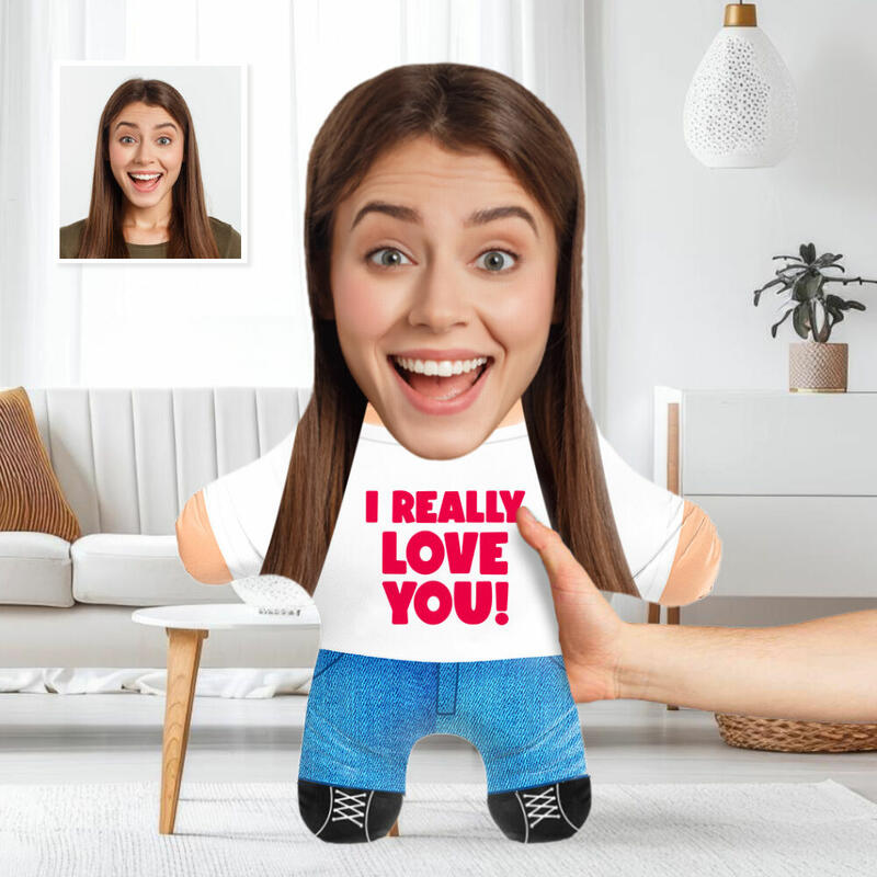 Custom Face Pillow "I Really Love You!" Photo Cushion Valentine's Day Gift for Him
