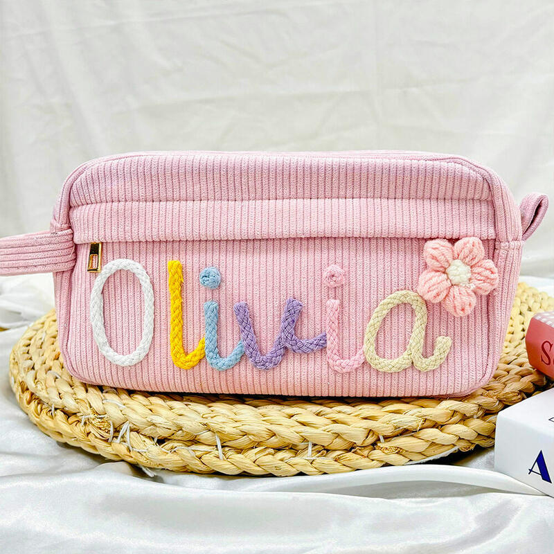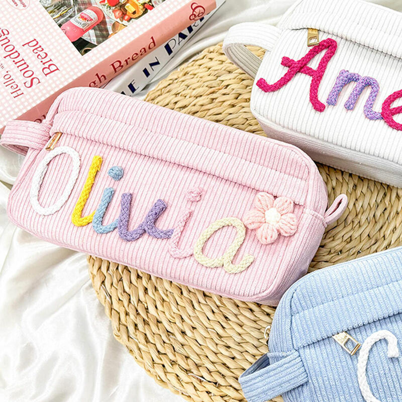 Custom Name Corduroy Pencil Bag Custom Color Name Back-to-School Gift for Kids