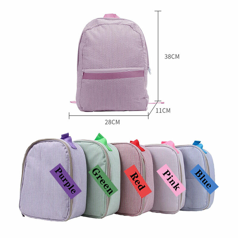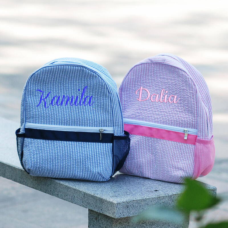 Customized Kids Backpack with Embroidered Name Seersucker School Bag for Students