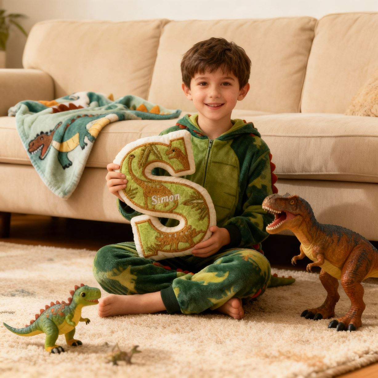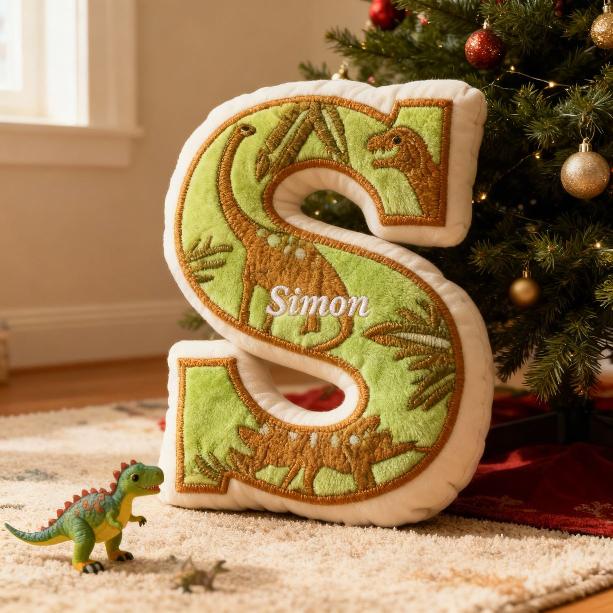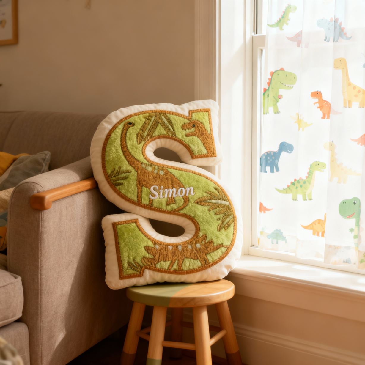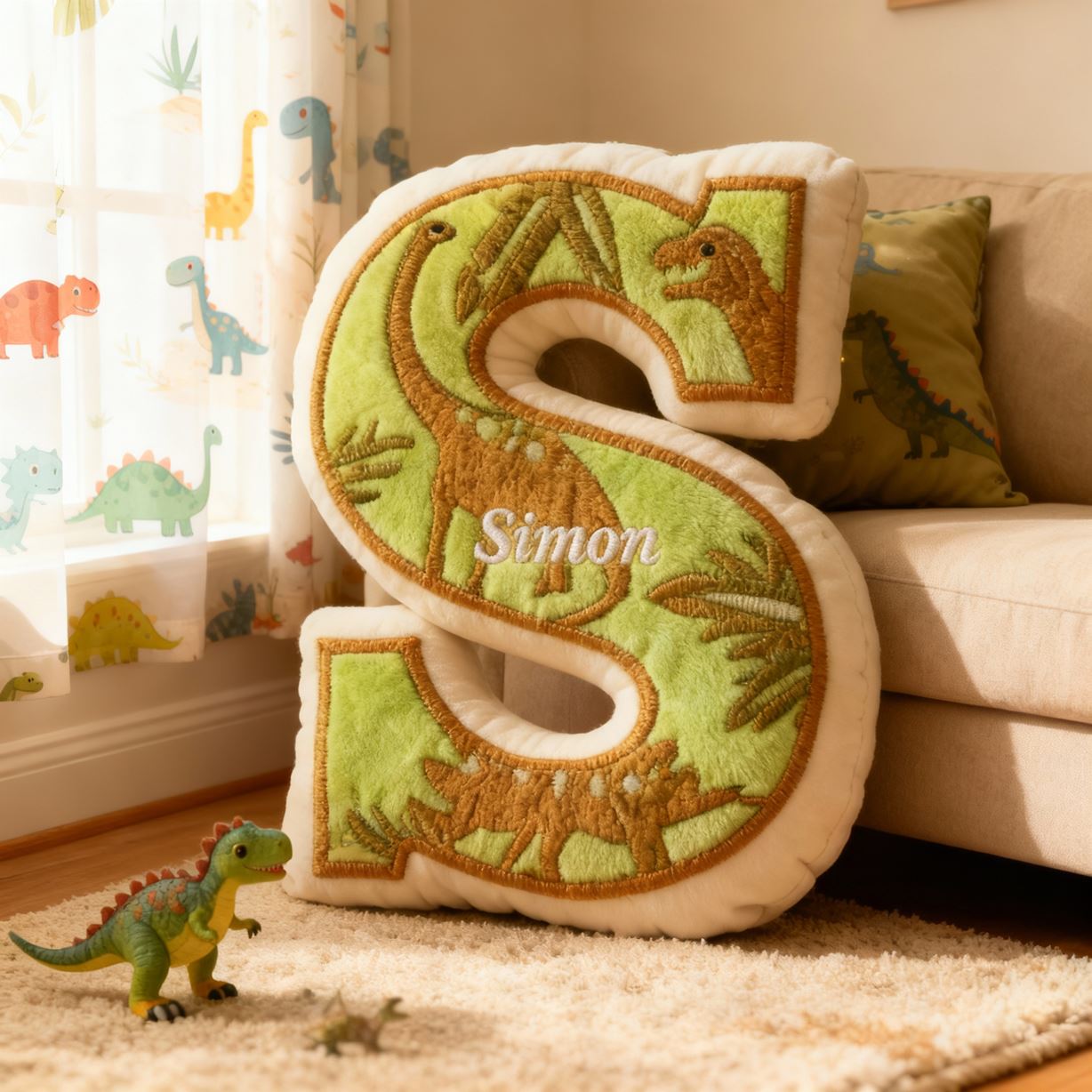 Customized Letter Name Pillow with Dinosaur Silhouette Theme Birthday Gift for Kids