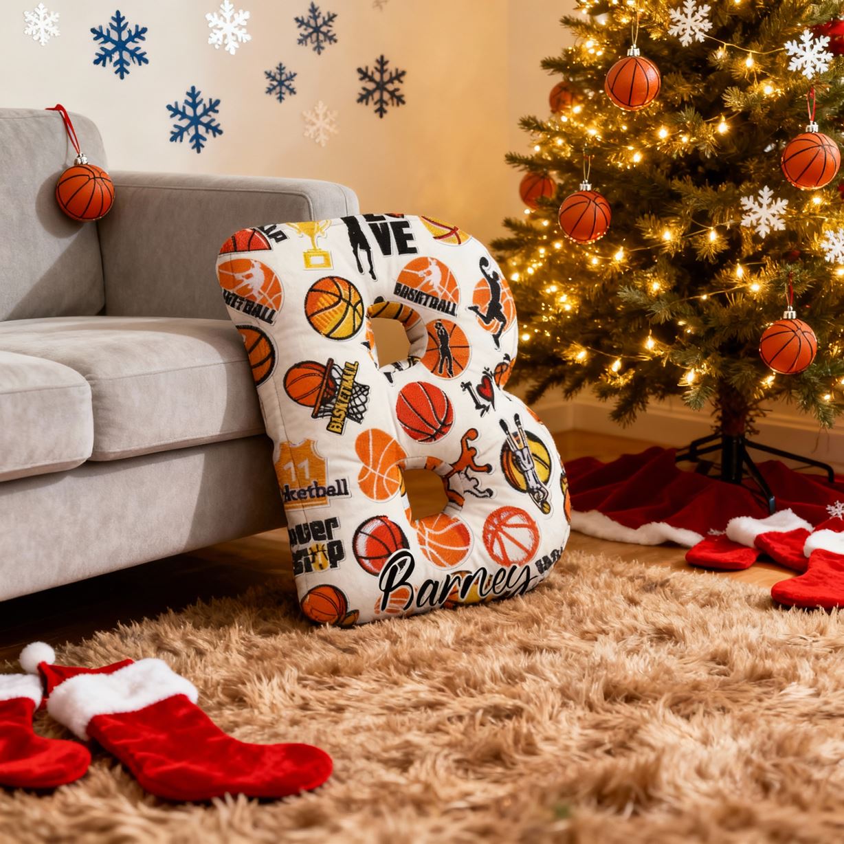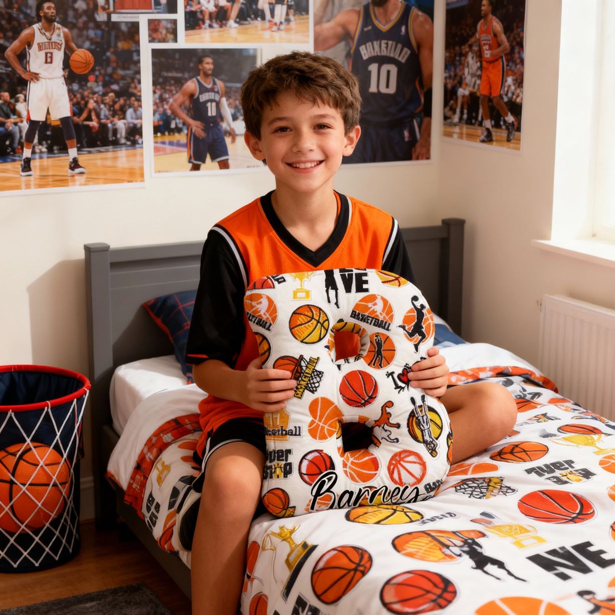 Personalized 3D Letter Pillow Fun Basketball Print Pillow Cartoon Fabric Decoration for Kids