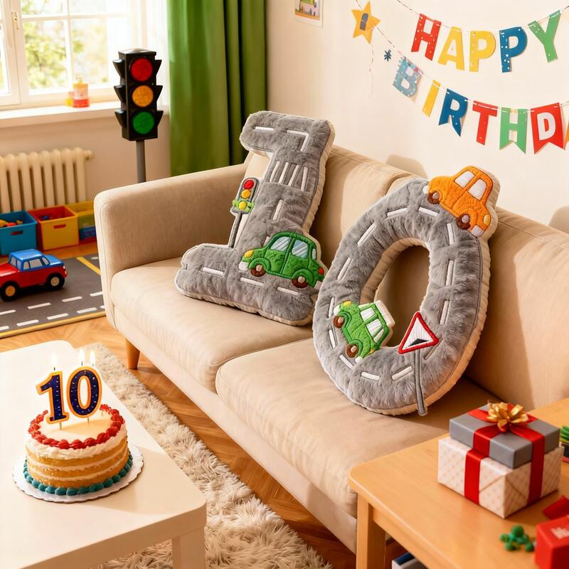 Personalized 3D Number Pillow Cartoon Car Themed Pillow A Birthday Gift for Kids
