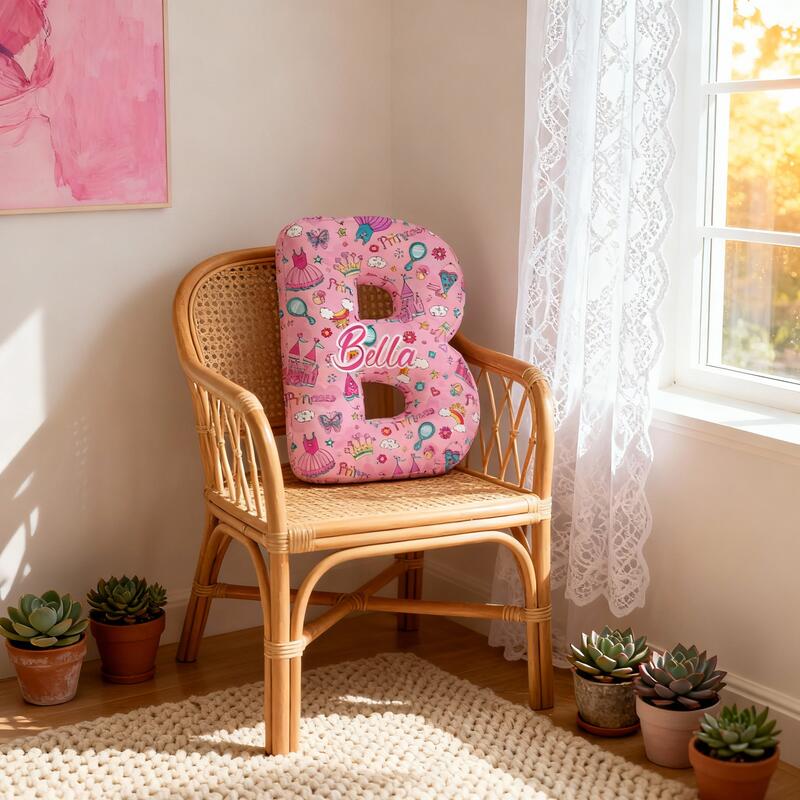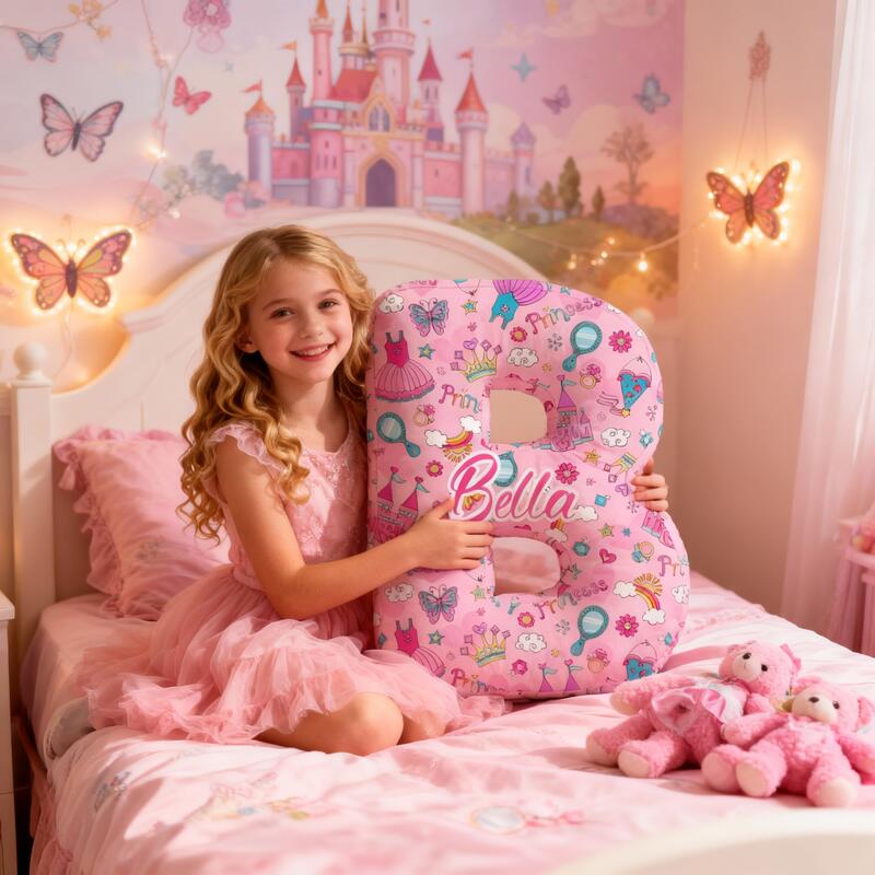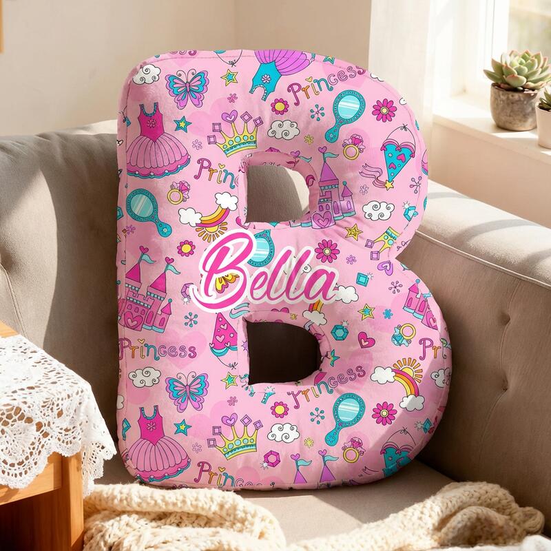 Personalized Cartoon Castle Pattern Letter Pillow Cute Gift for Girls
