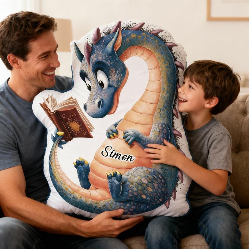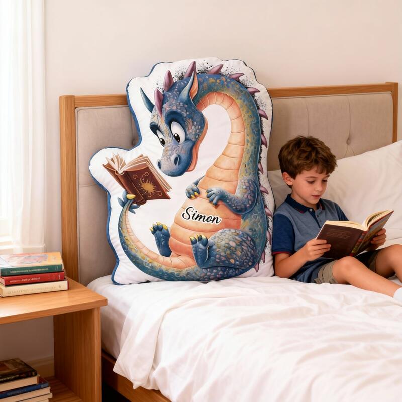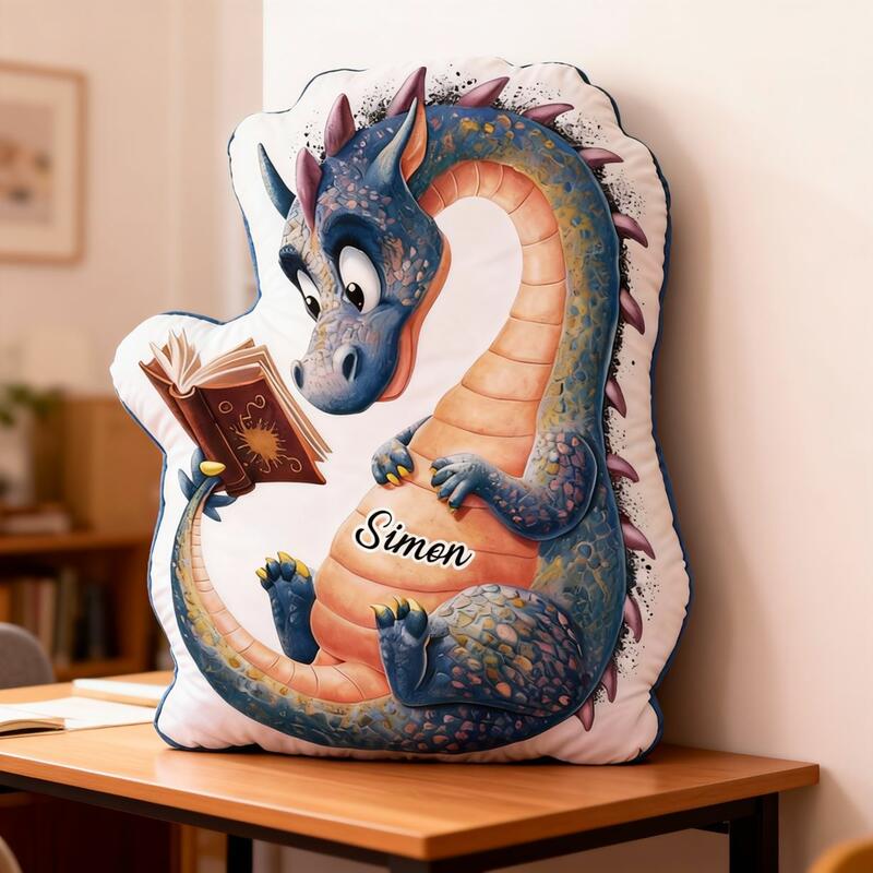 Personalized Cartoon Dinosaur Reading Pillow Cute Decorative Cushion Back-to-School Gift for Kids