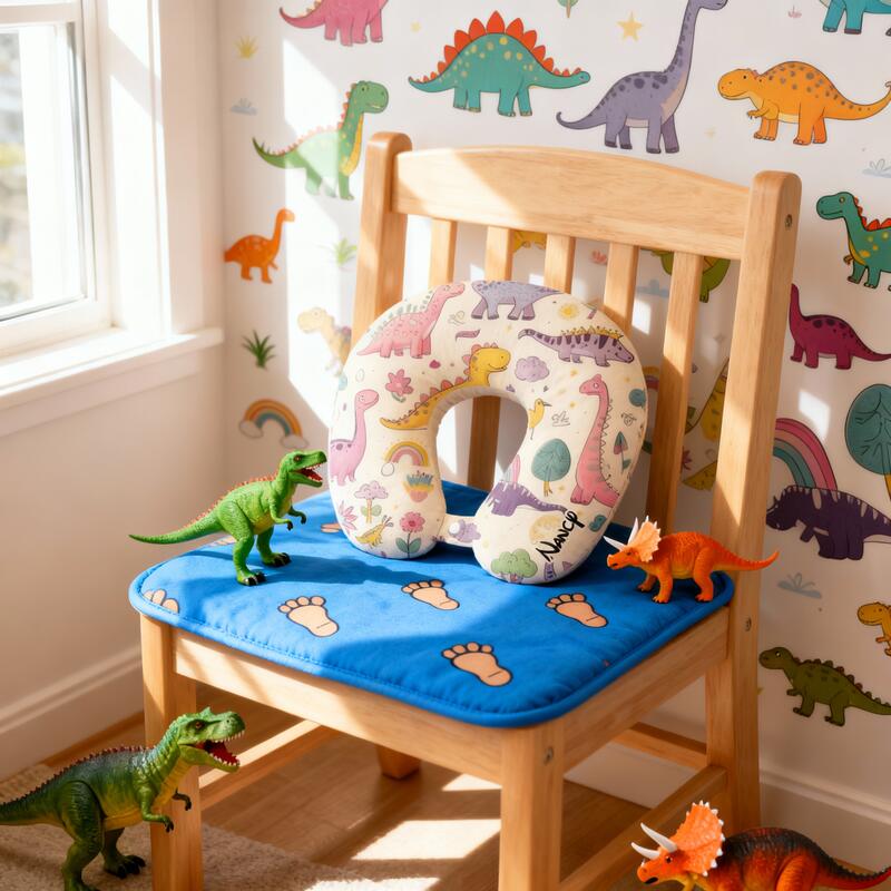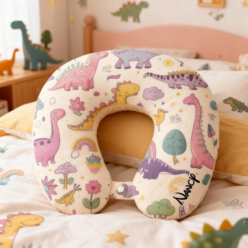 Personalized Cartoon Dinosaur U-Shaped Pillow Customizable with Name Great Travel Gift for Children
