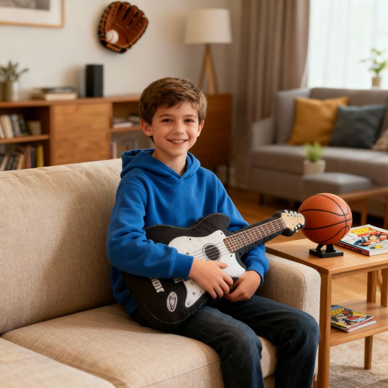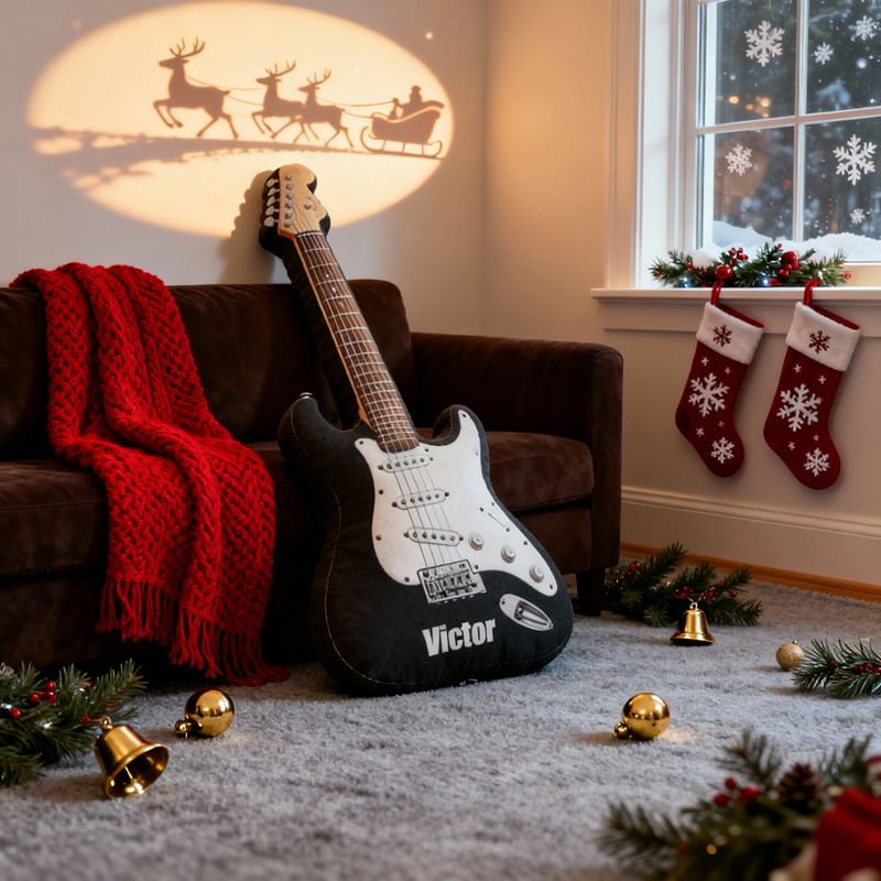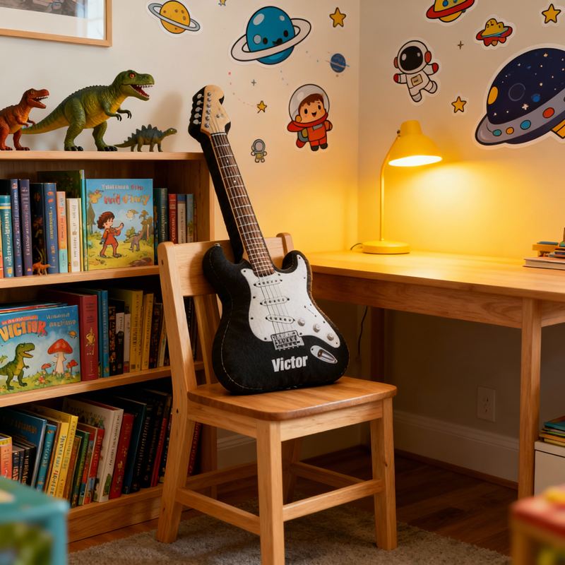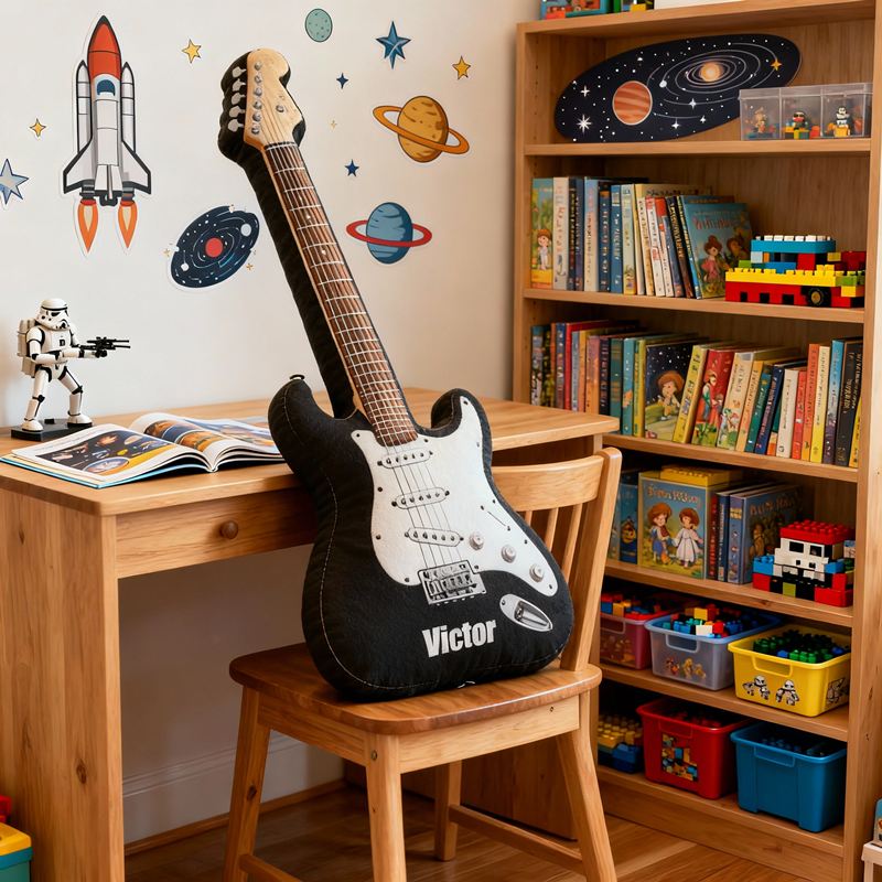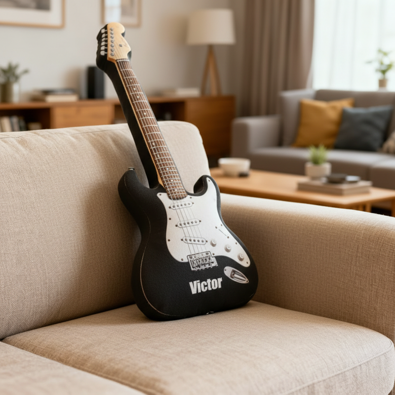 Personalized Cartoon-Shaped Pillow Cool Black Electric Guitar Design Gift for Music Lover Kids