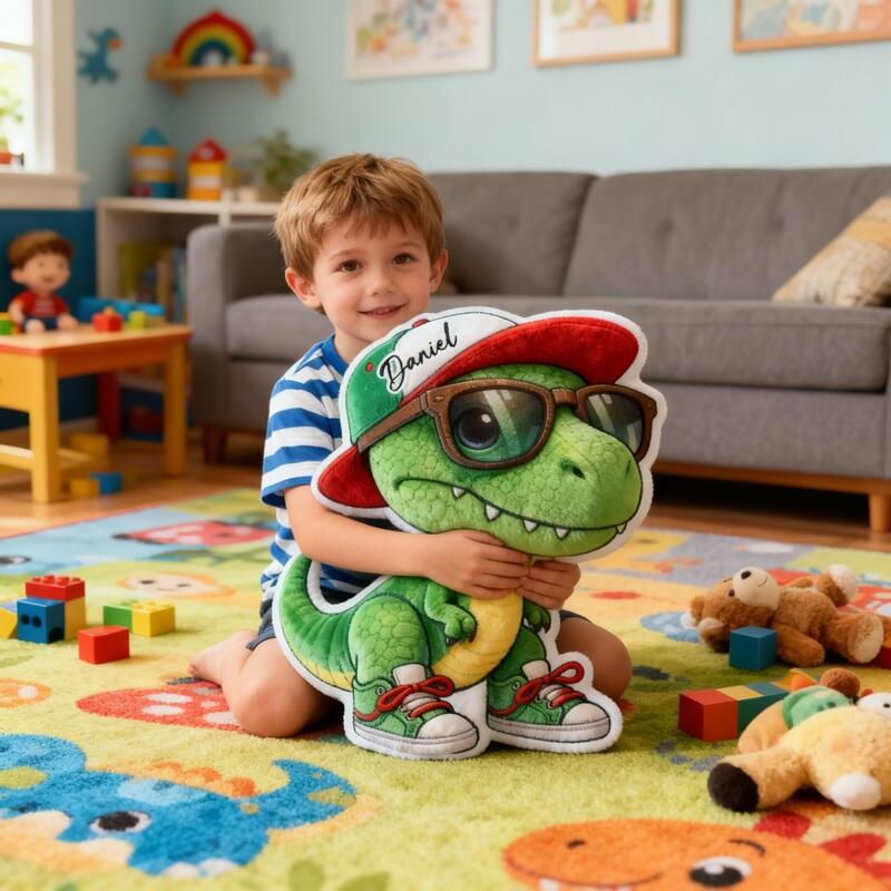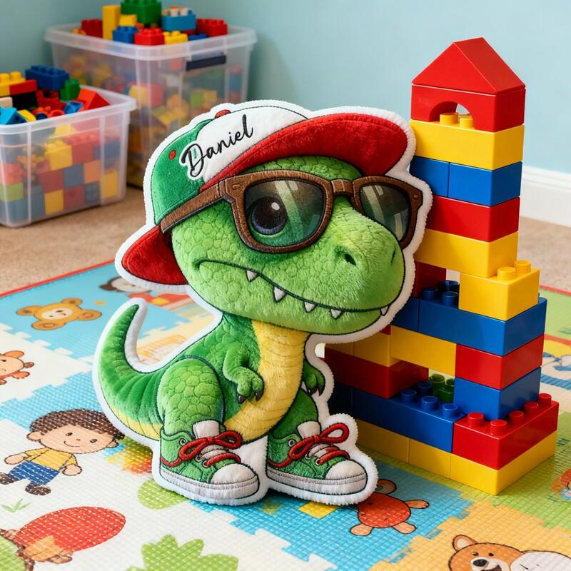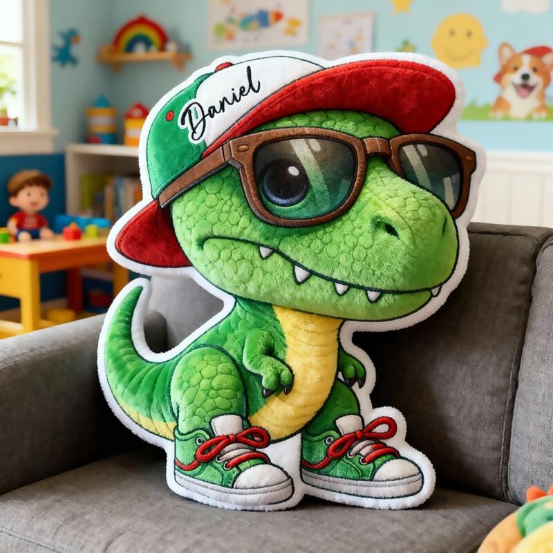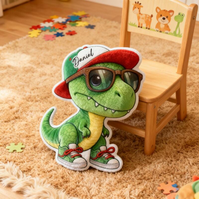 Personalized Cartoon-Shaped Pillow Cute Green Dinosaur Pattern Perfect Gift for Children