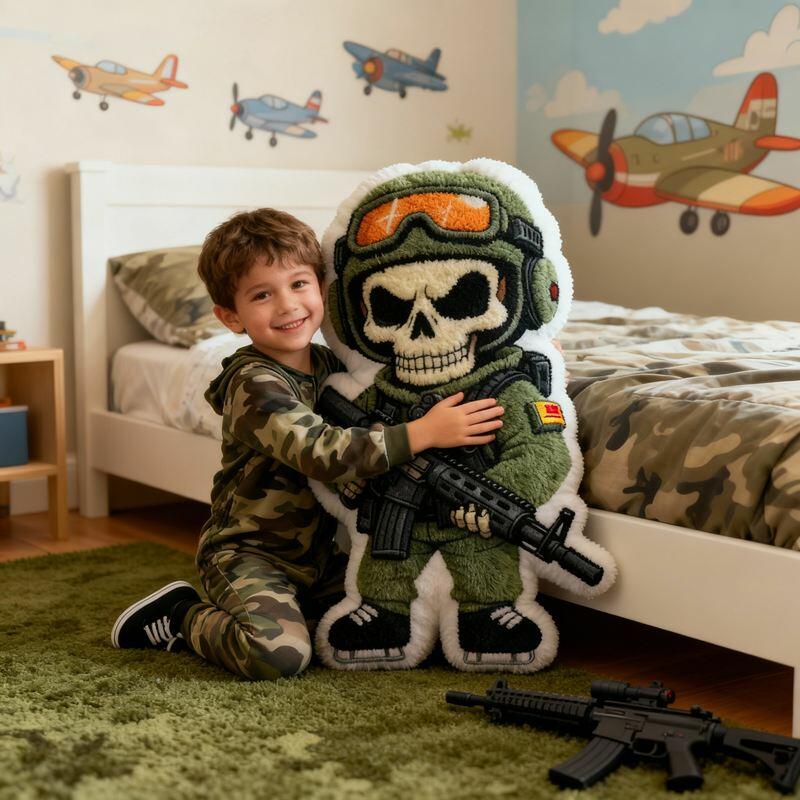 Personalized Cartoon-Shaped Pillow Skull Soldier Design Creative Gift for Boy Kids