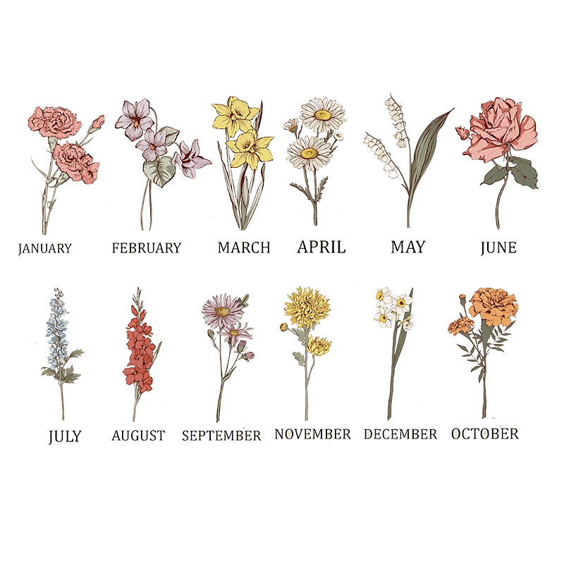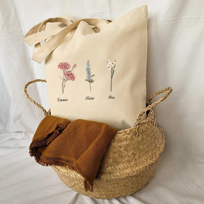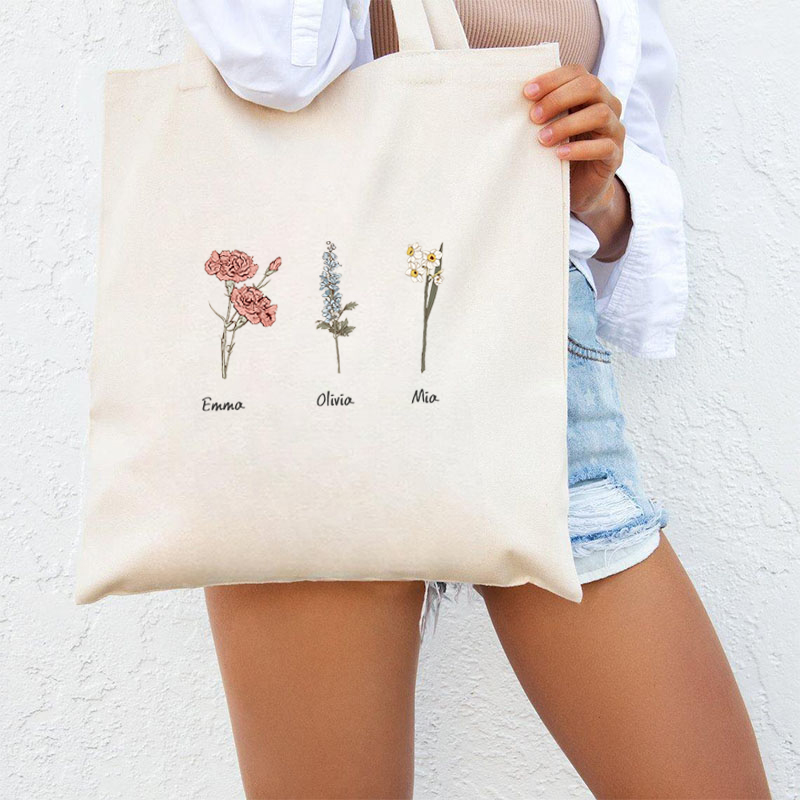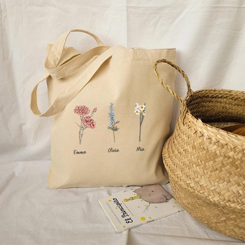 Personalized Color Birth Flower Canvas Bag Reusable Shopping Bag