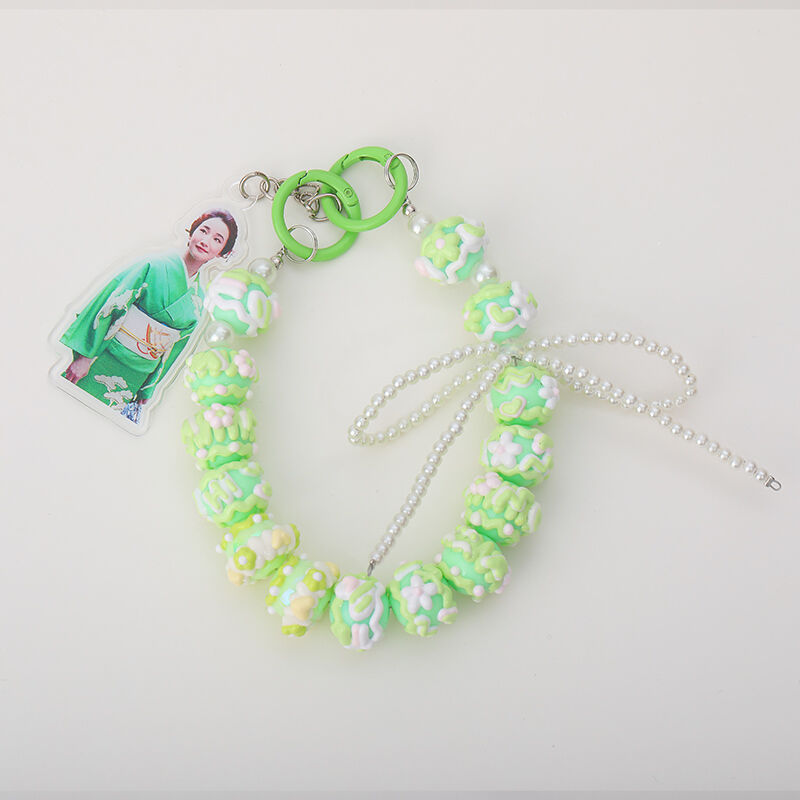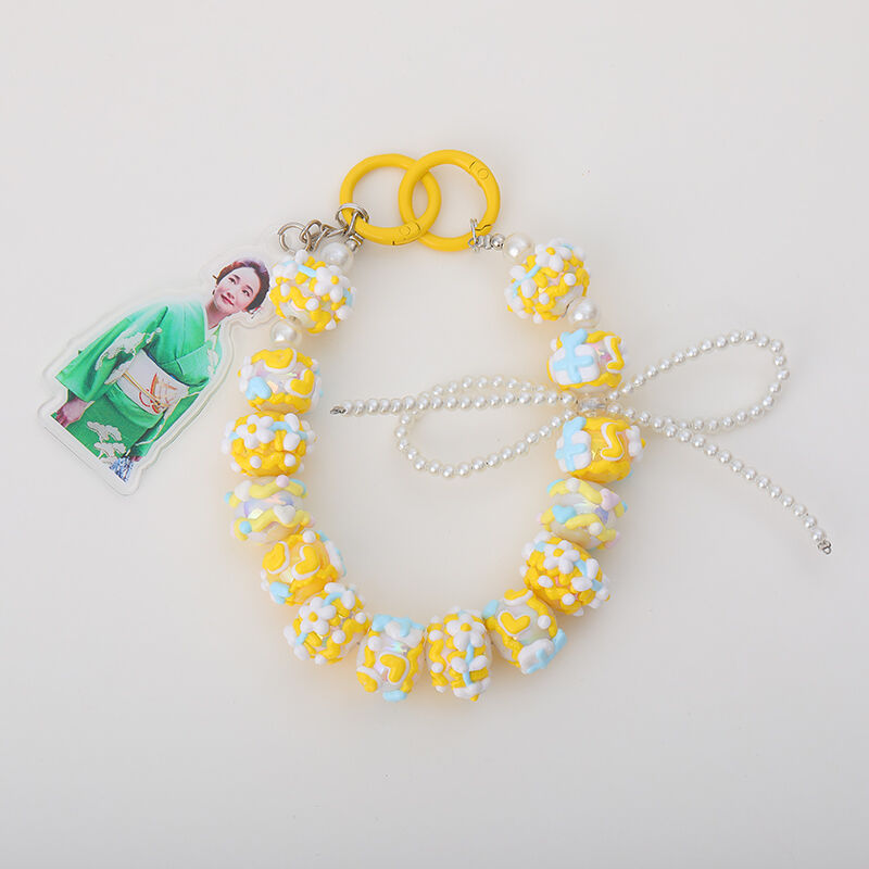 Personalized Colorful Hand-Painted Beads Mobile Phone Strap with Photo Gift for Family
