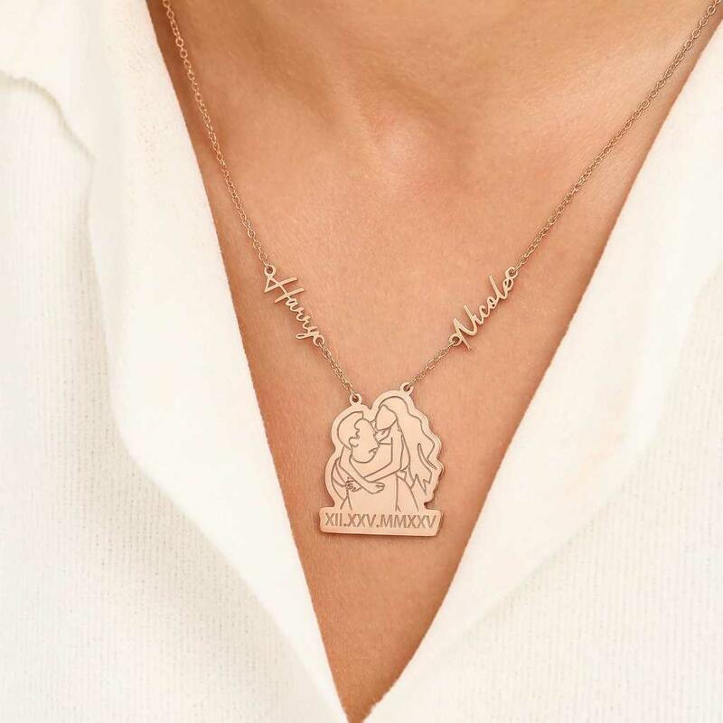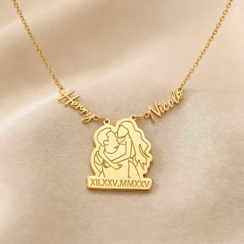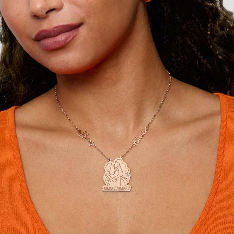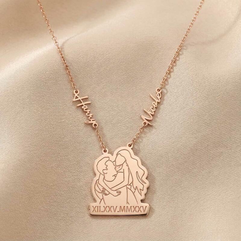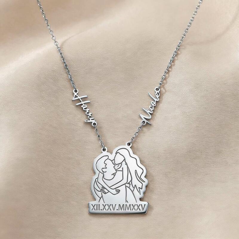 Personalized Couple Name Necklaces with Roman Numerals and Line Photos a Sweet Gift for Your Anniversary