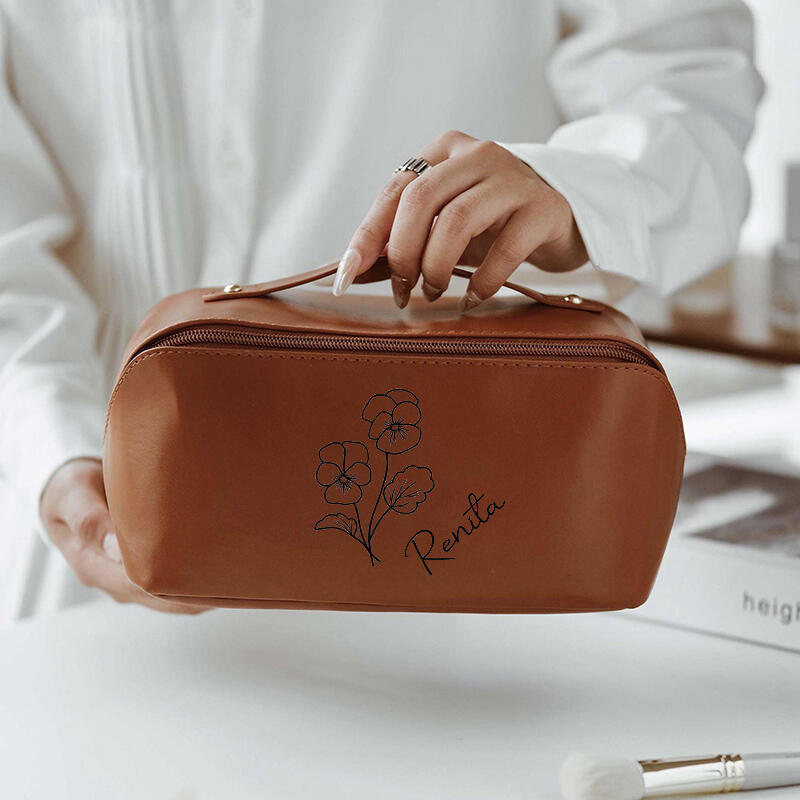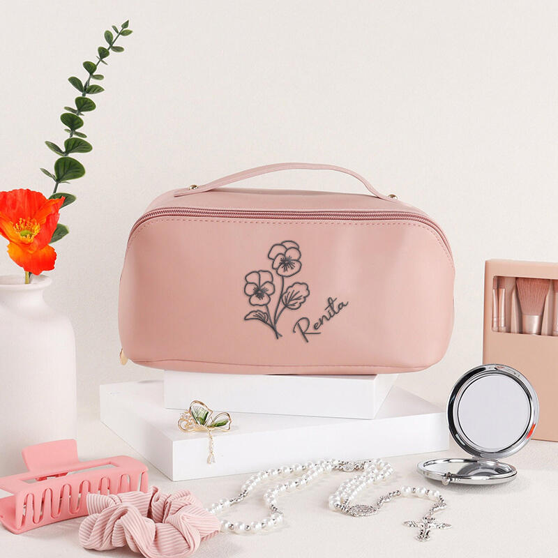Personalized Makeup Bag with Custom Name And Birthflower Beautiful Gift for Her