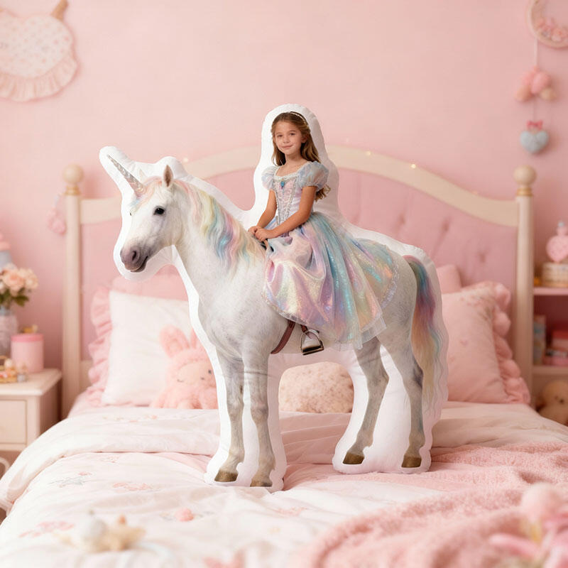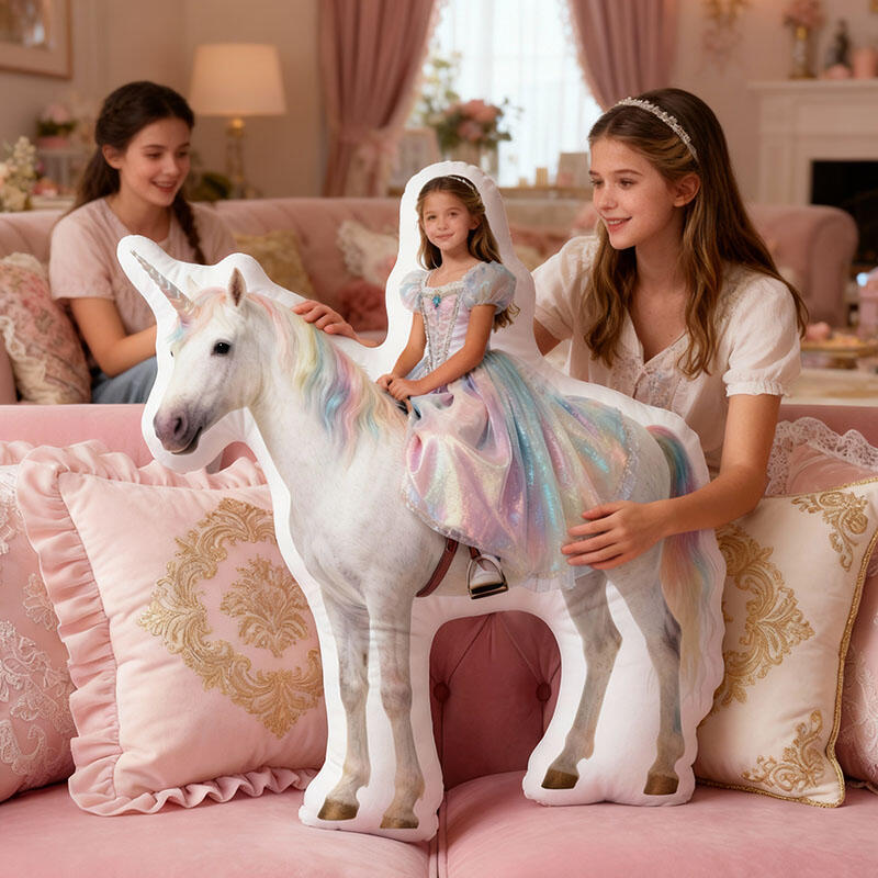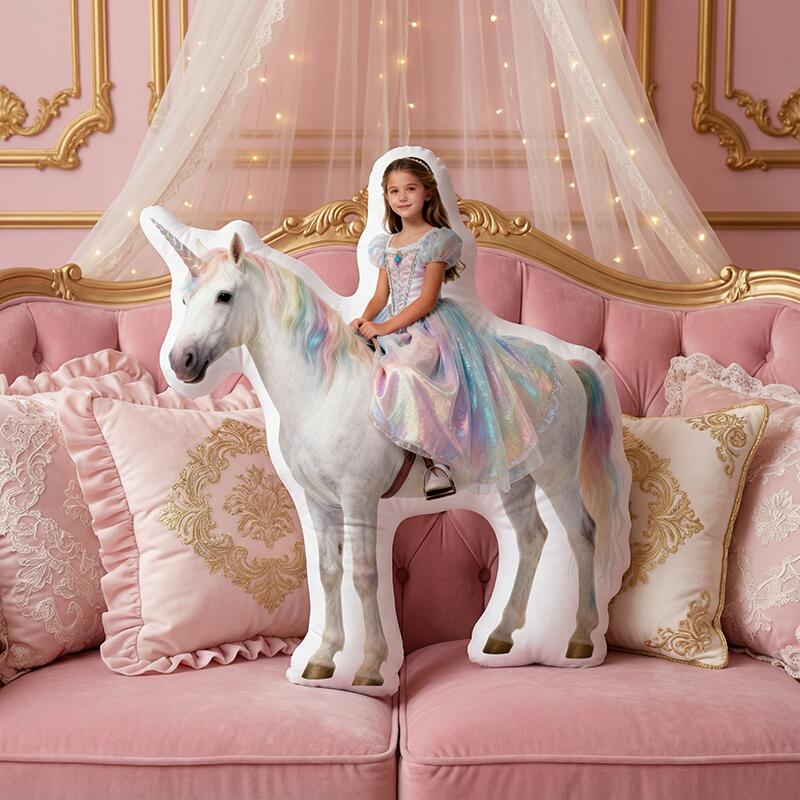 Personalized Face Portrait Pillow with Unicorn Pattern Design Beautiful Gift for Children