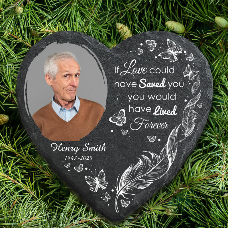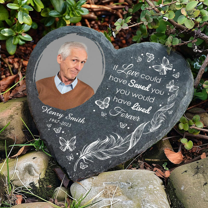 You can upload a favorite photo of your loved one or pet, their name and nickname, as well as other special dates, meaningful quotes, and more, all to bring love and goodness to your mind when you see this stone.
