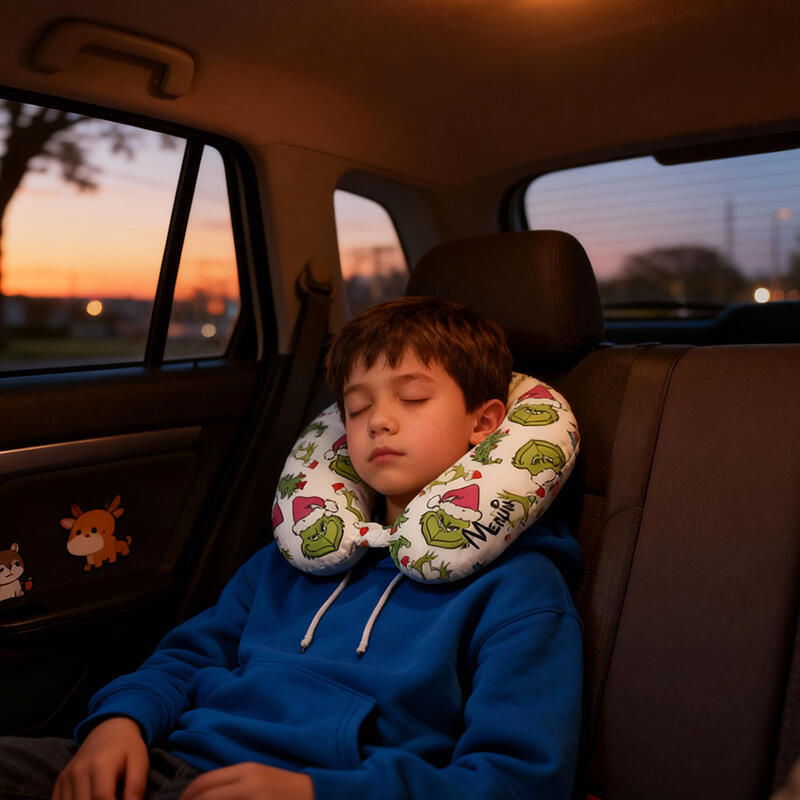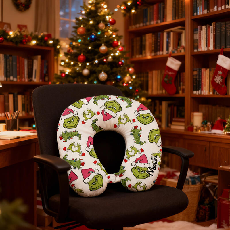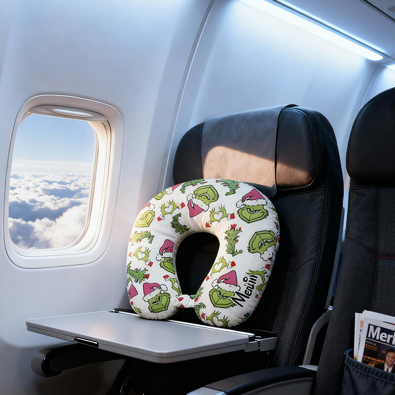 Personalized Green Cartoon Character U-Shaped Pillow Customizable with Name a Travel Gift for Children