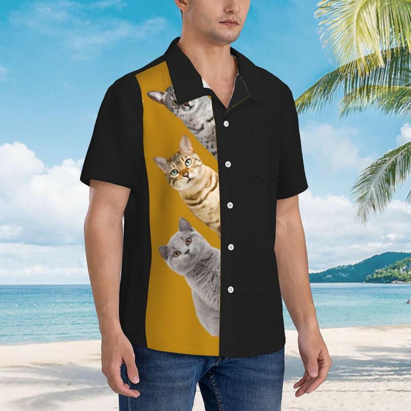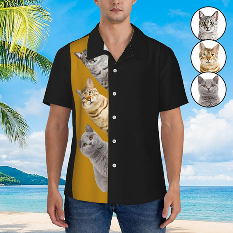 Personalized Hawaiian Shirt Cute Cat Short Sleeve Shirt for Pet Lovers