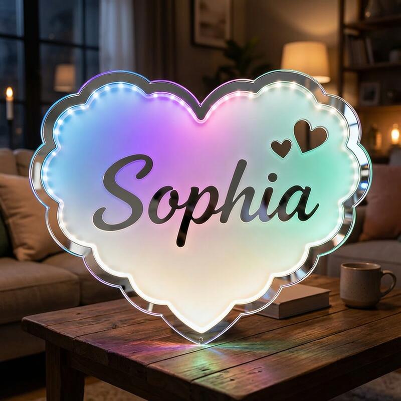 Personalized Heart-Shaped Mirror Lamp a Sweet Gift for Friends