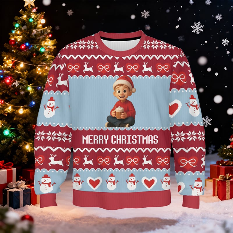 Personalized Kids Ugly Sweater Unisex Custom Photo Cartoon Design Perfect Christmas Gift for Children