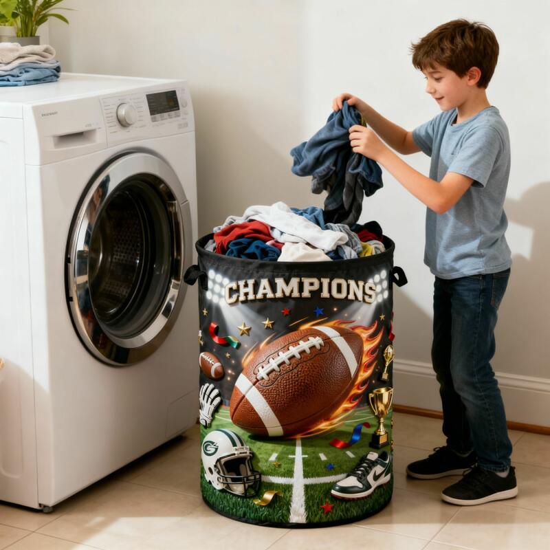 Personalized Laundry Baskets with Customizable Names and American Football Designs Perfect as a Home Gift