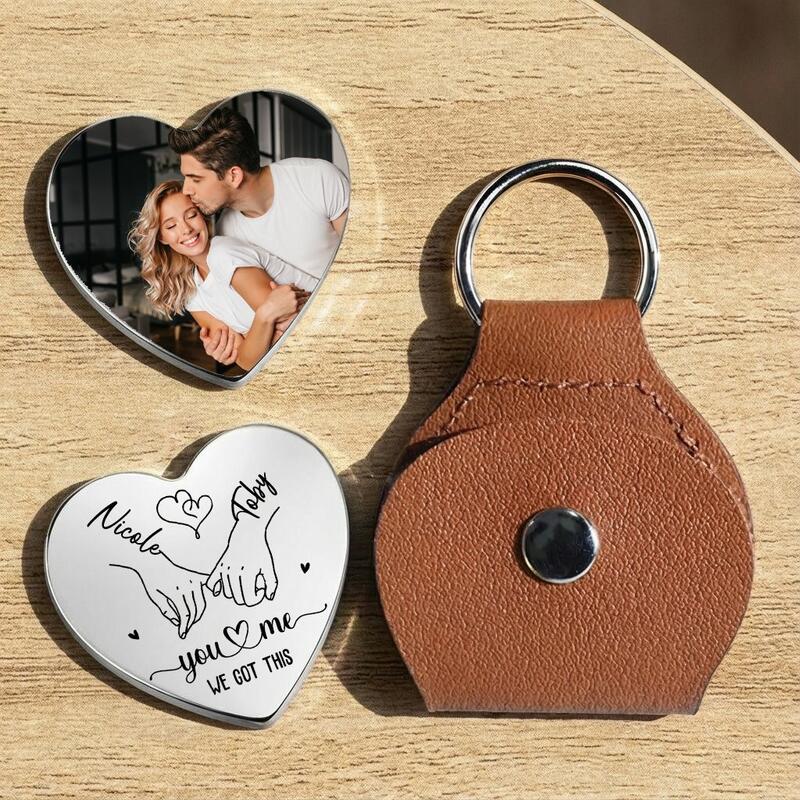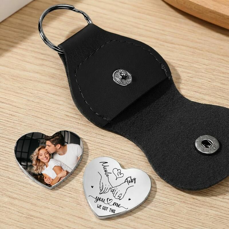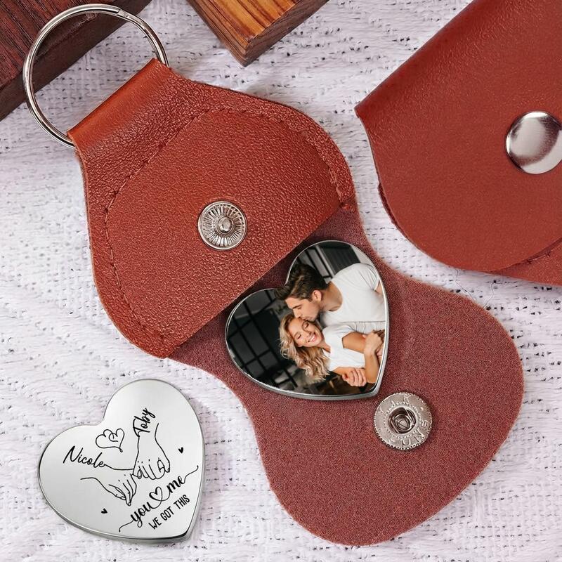 Personalized Leather Pocket Hug Keychain Add Names and Cartoon Photo for Valentine's Day