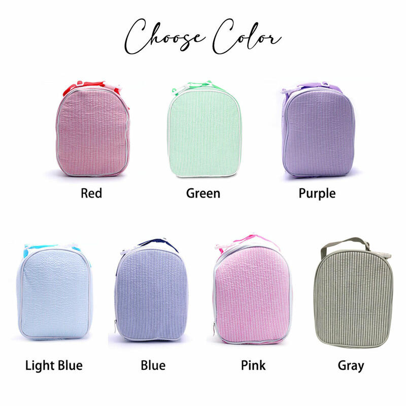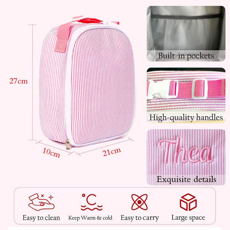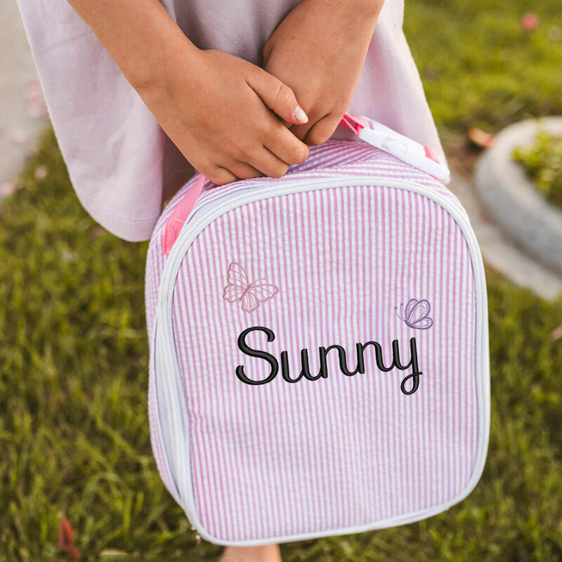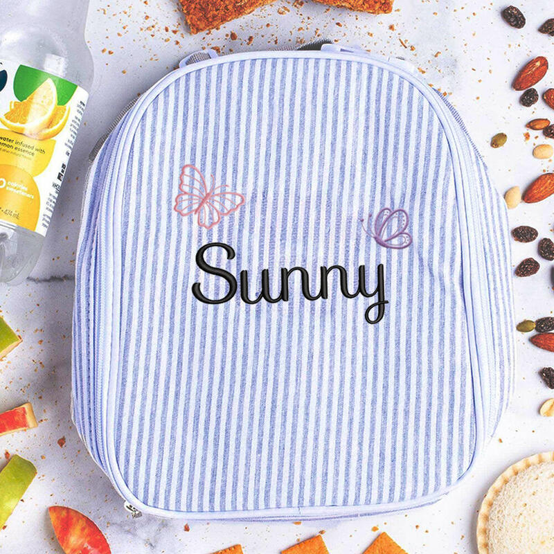 Personalized Lunch Box with Butterfly Embroidery Seersucker Insulated Meal Bag Gift for Kids