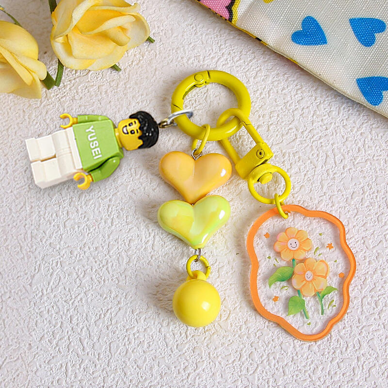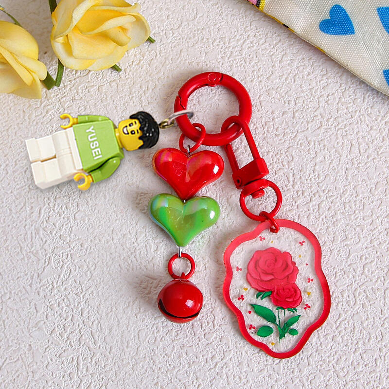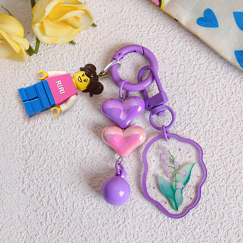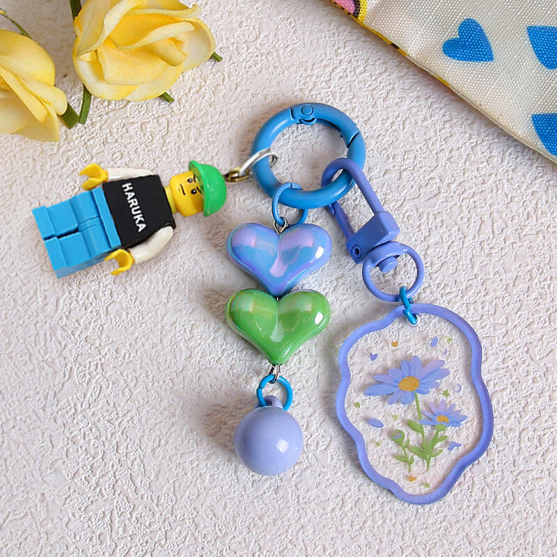 Personalized Minifigure Keychain With Heart And Flower Accessories Cute Gift