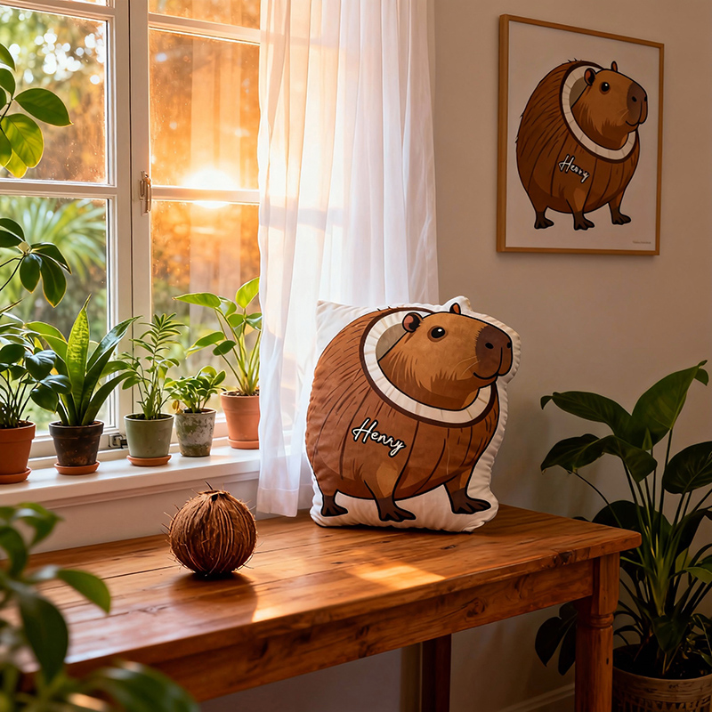 Personalized Name Pillow with Capybara Design Cute Gift for Kids