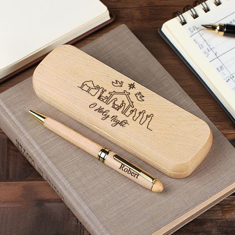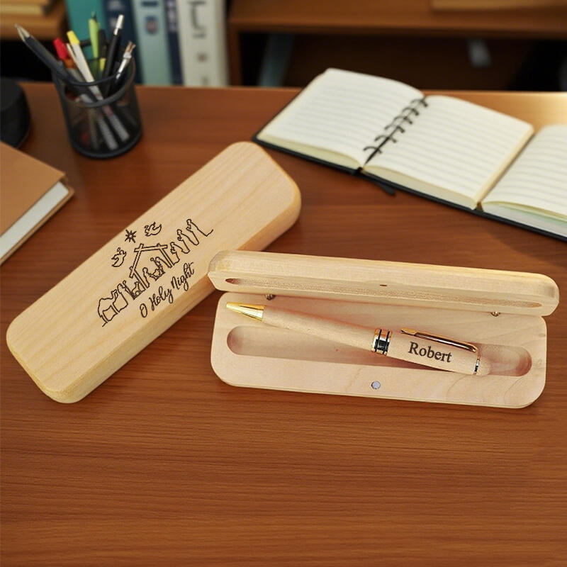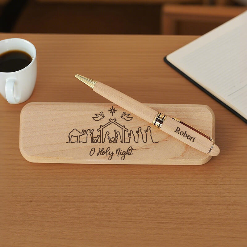 Personalized Pen Wooden Box Nativity Scene Oh Holy Night Design Creative Gift for Christian Friends