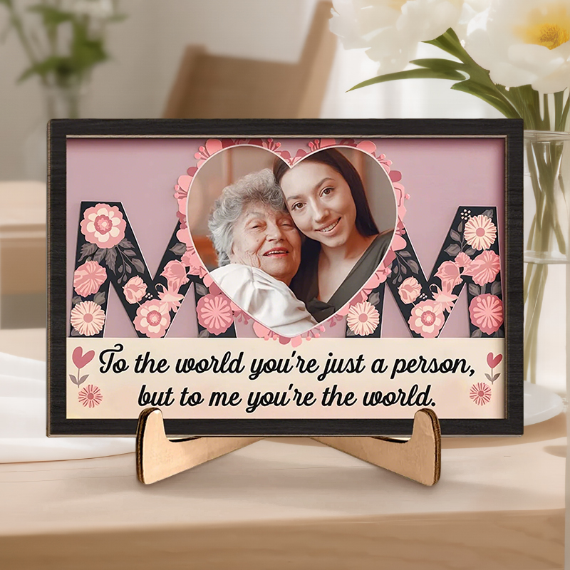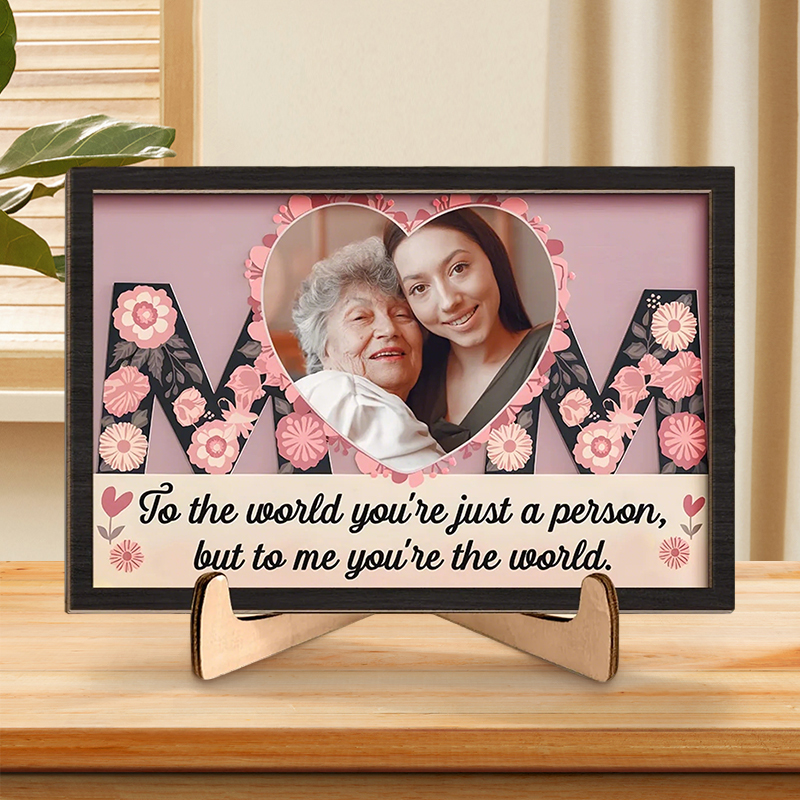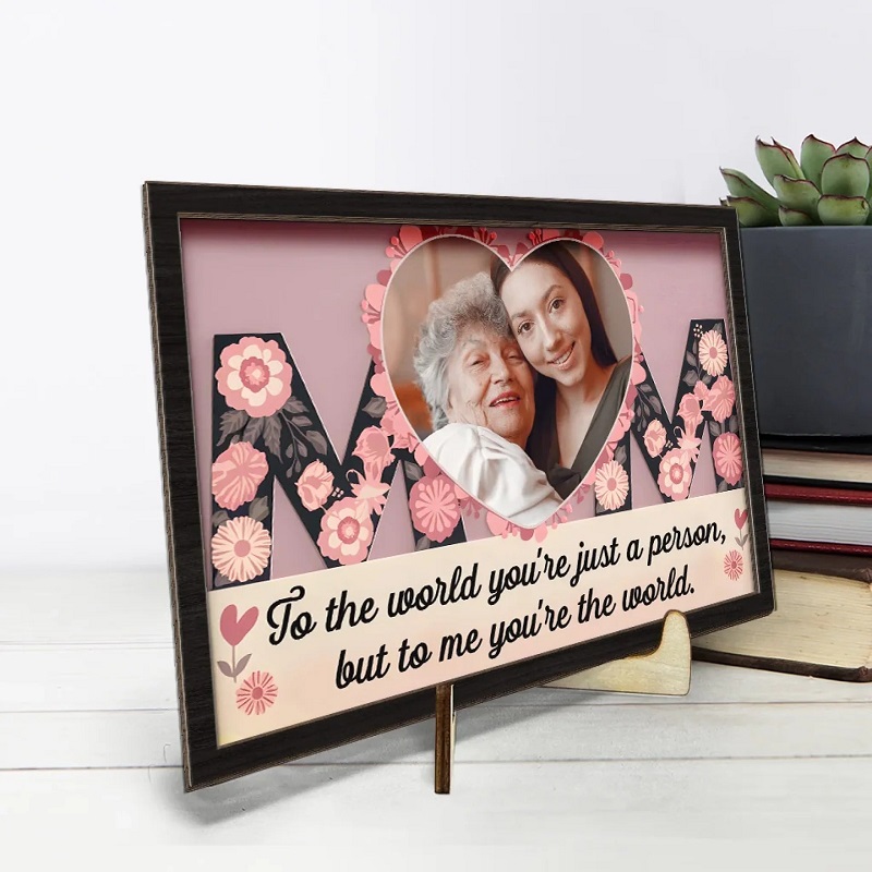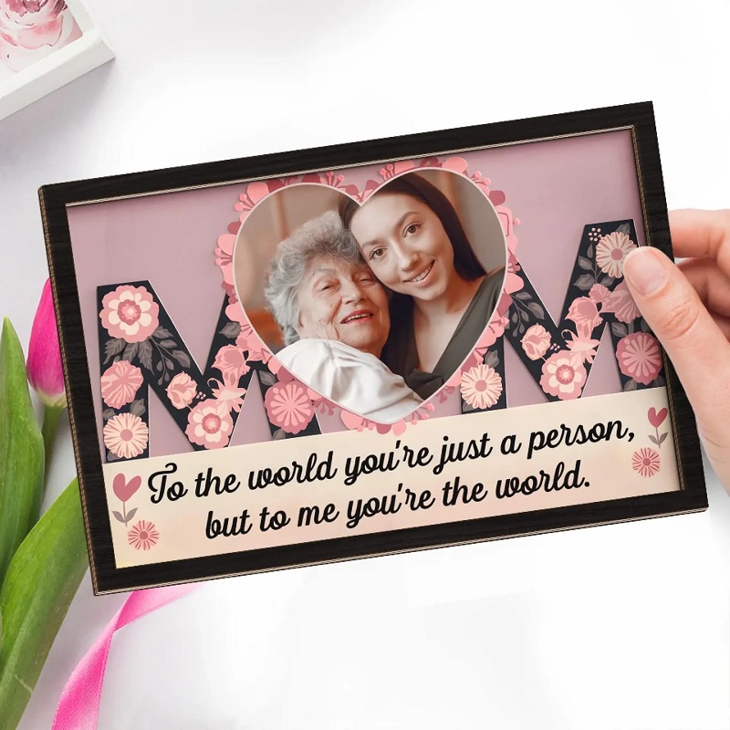 Personalized Photo Frame Mom You're The World To Me with Heart Blossom Design Pretty Mother's Day Gift