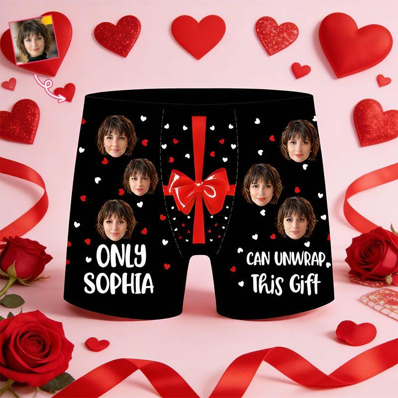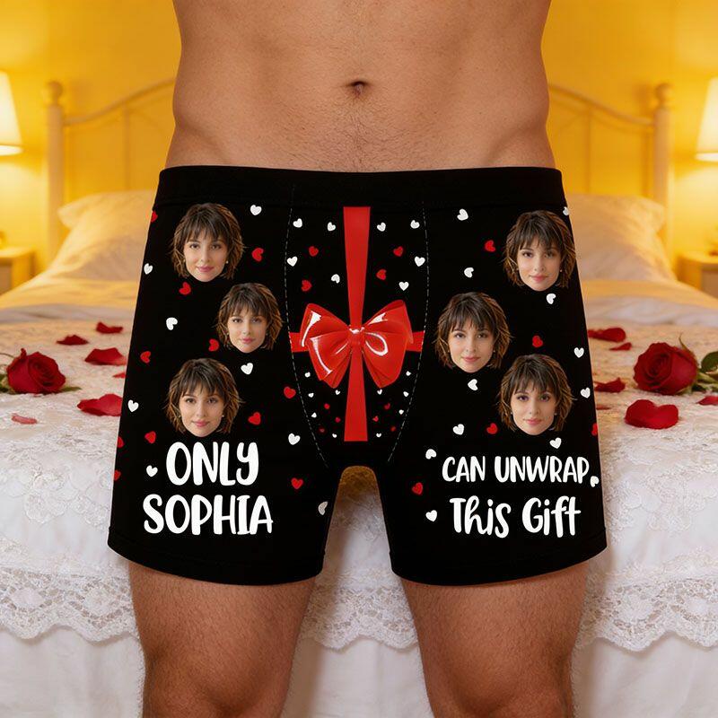 Personalized Picture Men's Underwear Boxer Briefs with Bow Pattern Surprising Gift for Boyfriend