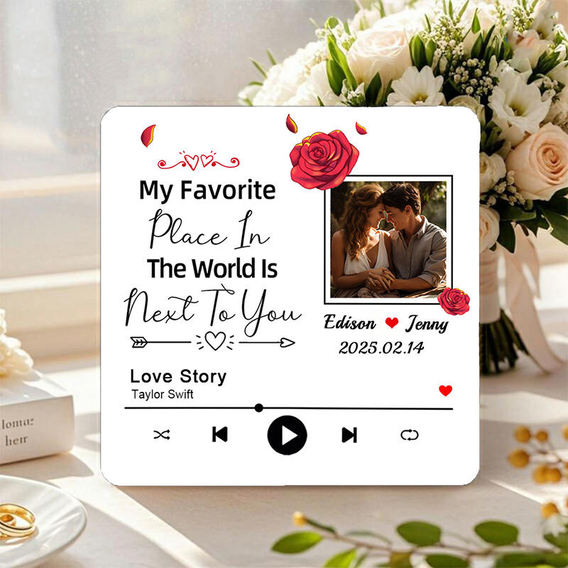 Personalized Picture Music Fridge Magnet with Flowers Pattern Beautiful Gift for Valentine's Day