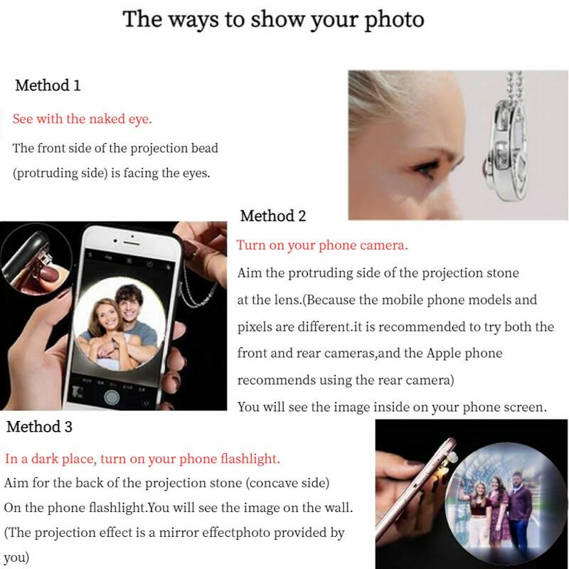Engraved love never fades, and treasured memory will always be with you. Carry your cute photo hidden in the pendant, You can see the photo inside the pendant, or you can use it to illuminate the light and project your photo on the wall. The best dreamy gift for yourself family, and friends.