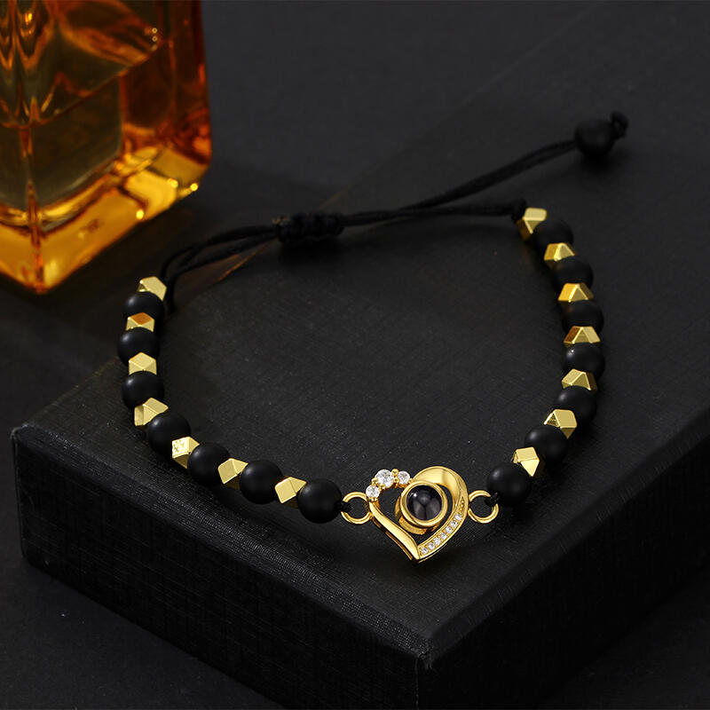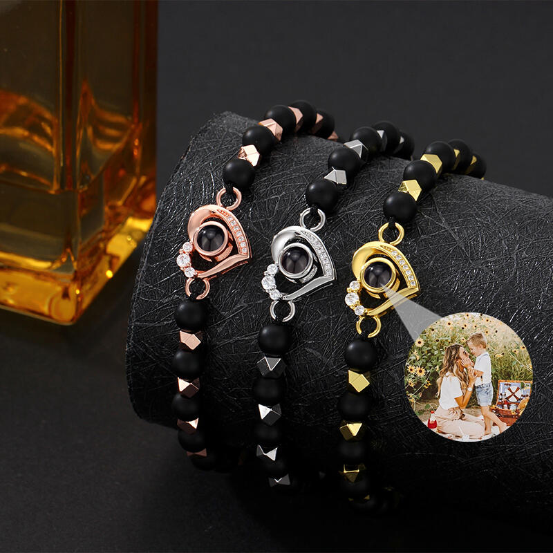 Personalized Picture Projection Bracelet With Beads And Heart Shape Charm Mother's Day Gift For Mom
