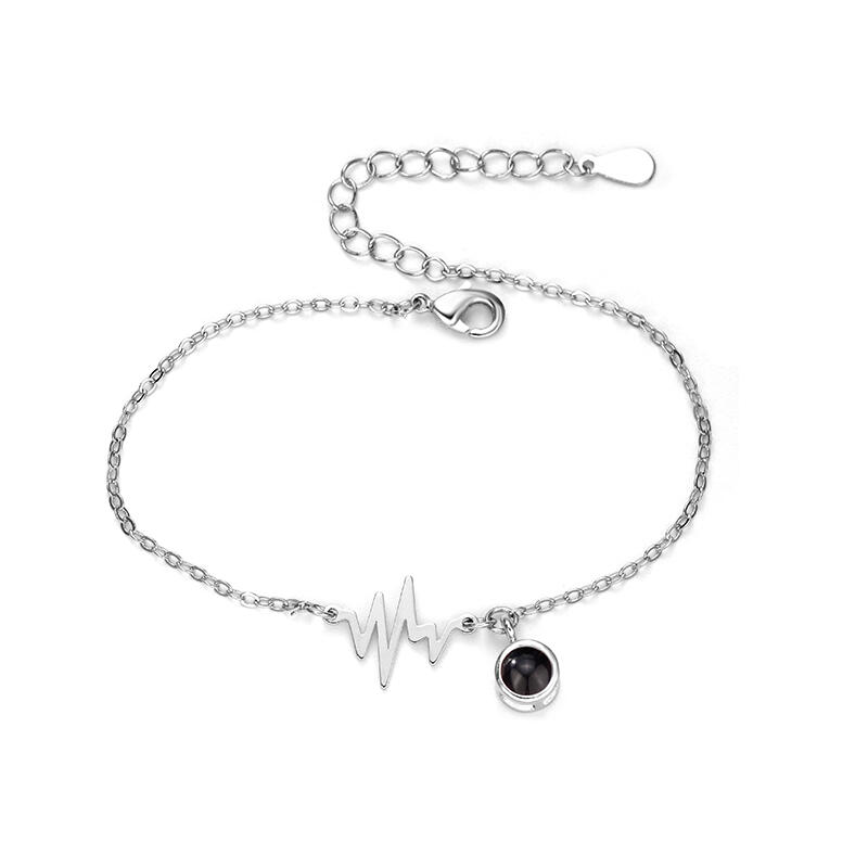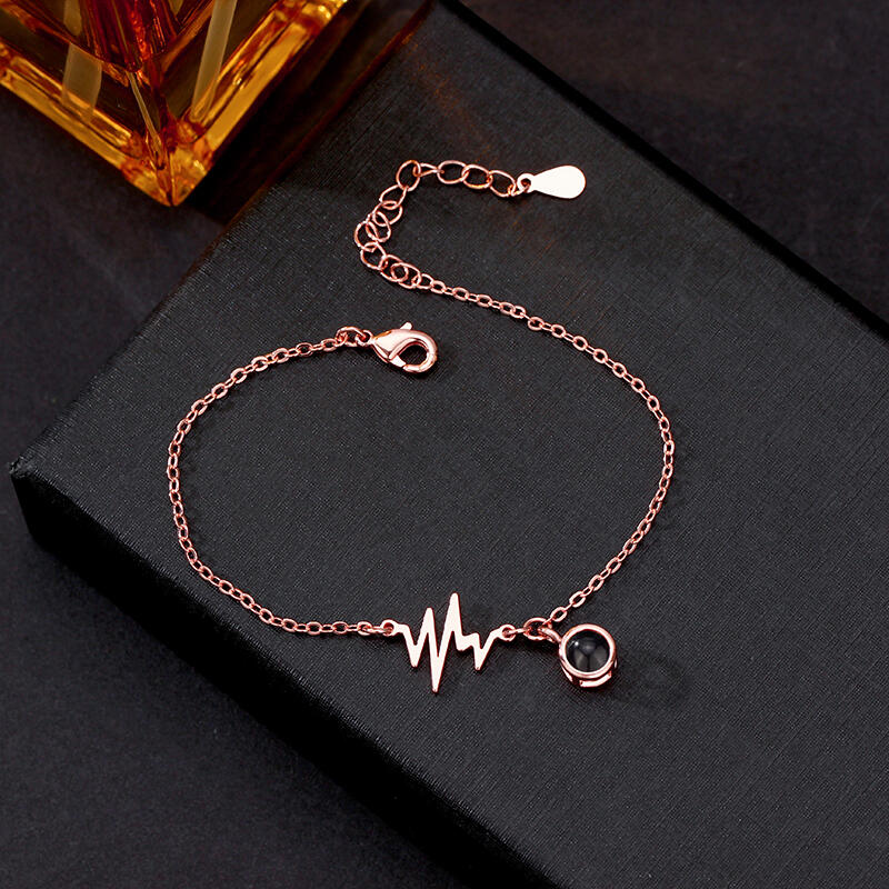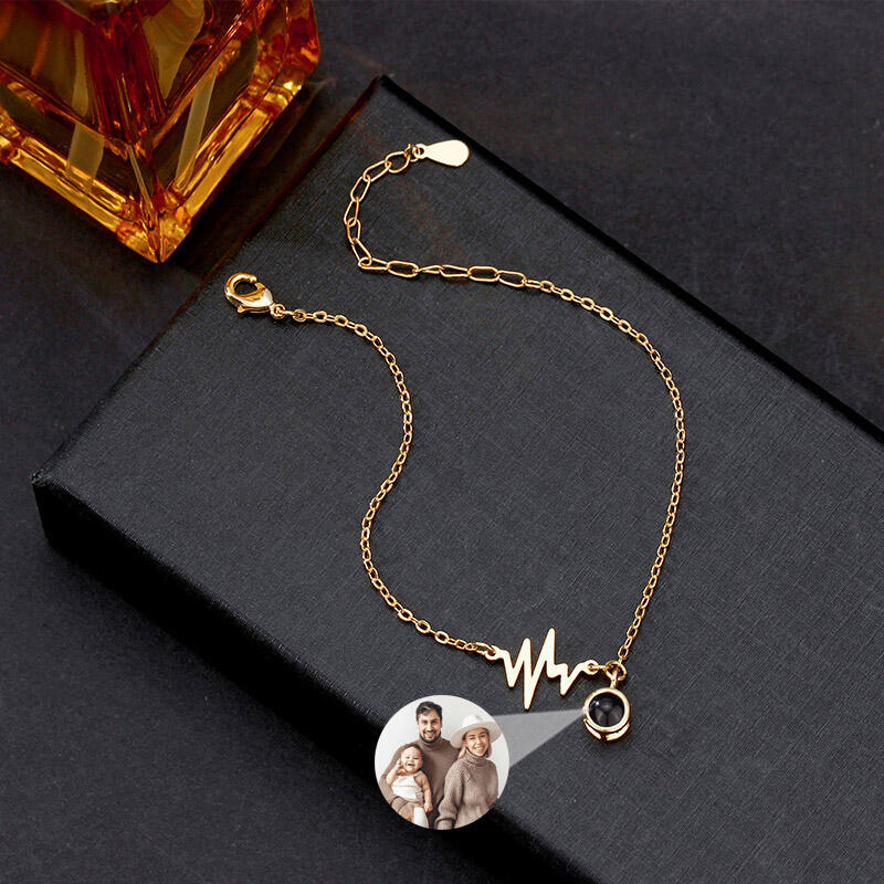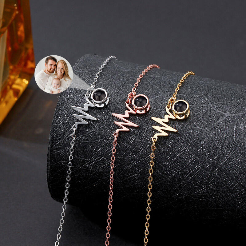 Personalized Picture Projection Bracelet with Electrocardiogram Gift for Her