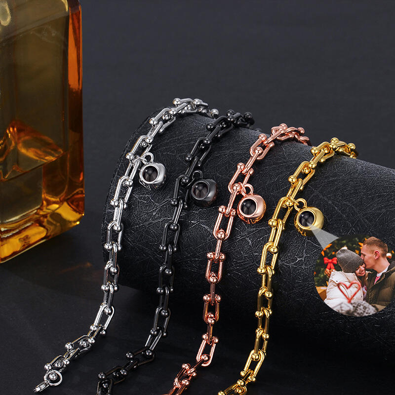 Personalized Projected Picture Bracelet With Creative Chain Simple Christmas Gift For Boyfriend