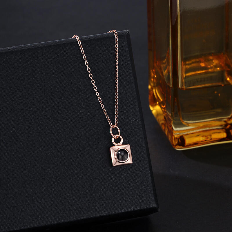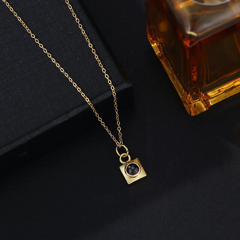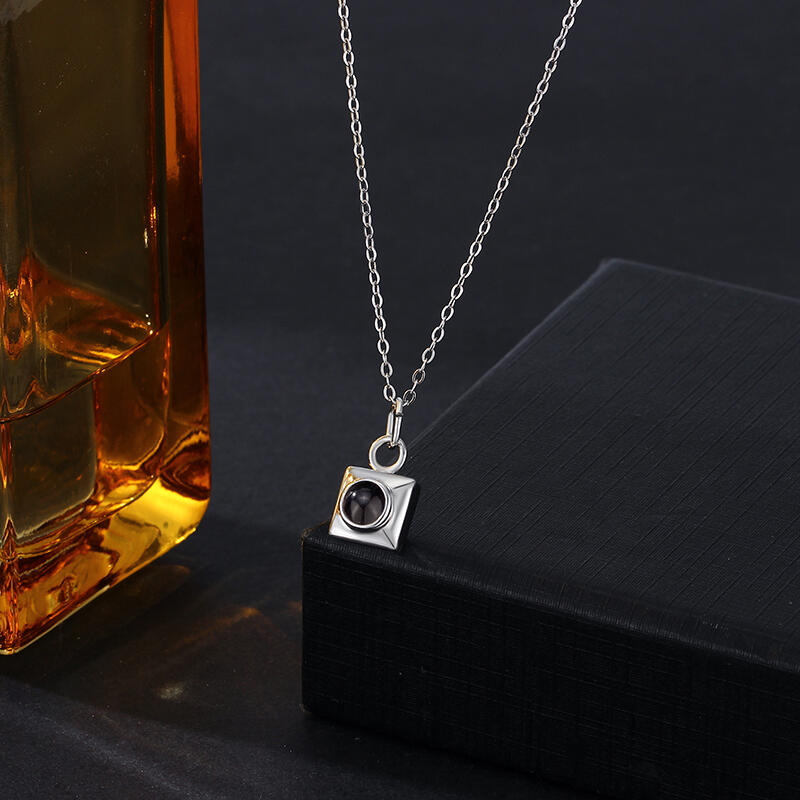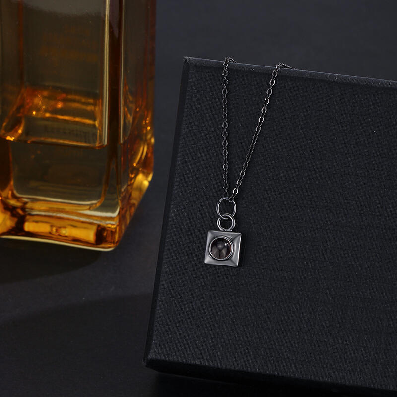 Personalized Projection Picture Necklace With Square Pendant Christmas Gift For Men