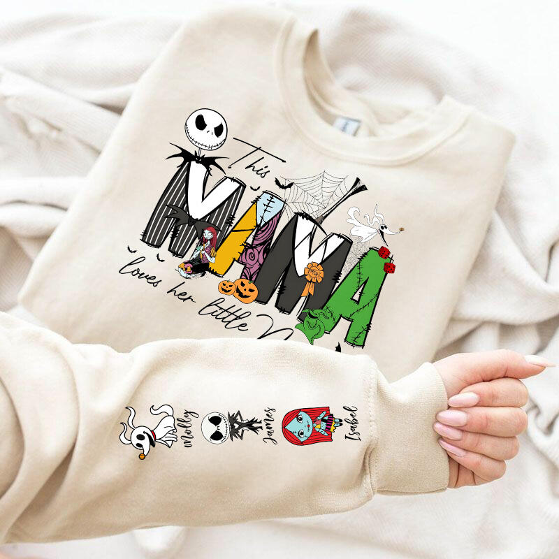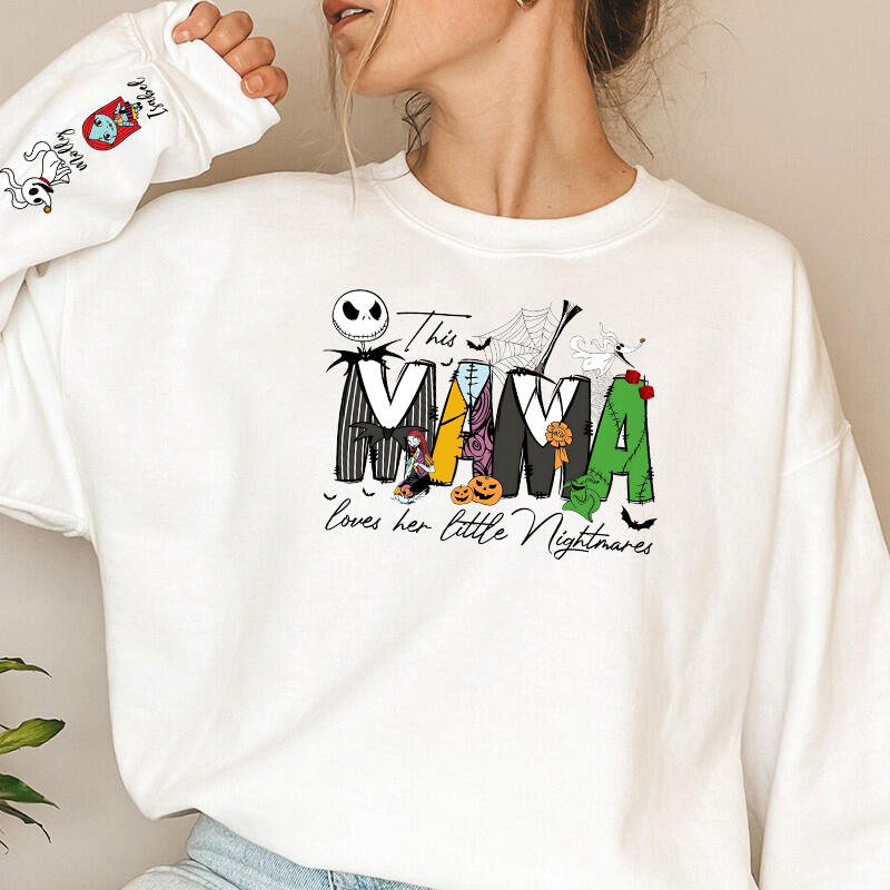 Personalized Sweatshirt This Mama Loves Her Little Nightmares Custom Kids Name Perfect Halloween Gift for Dear Mom