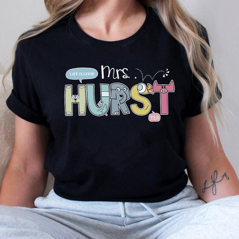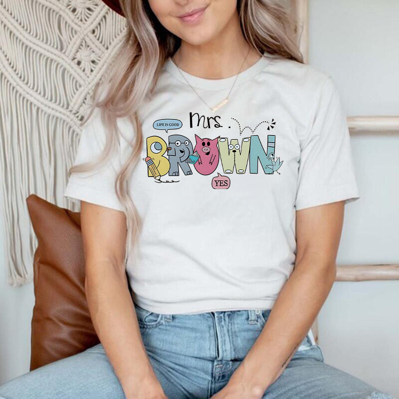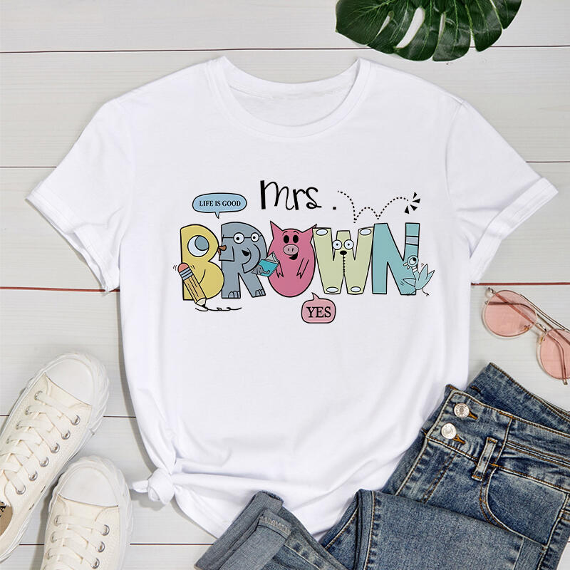 Personalized T-shirt Custom Cute Elephant and Piggie Name Design Funny Teacher Shirt Gift