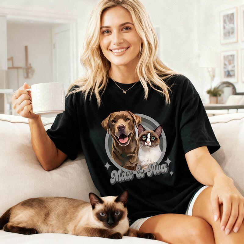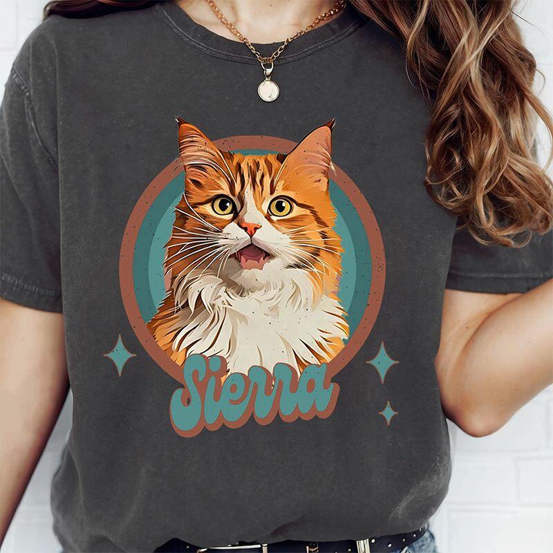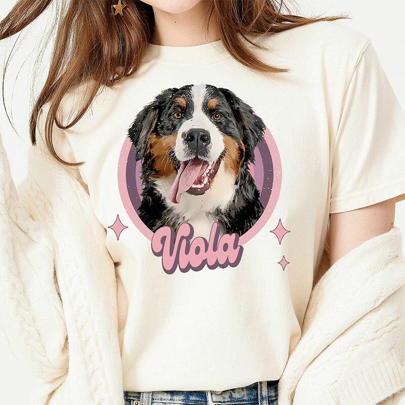 Personalized T-shirt Custom Pet Photo and Name Colorful Vintage Design Perfect Gift for Pet Lovers