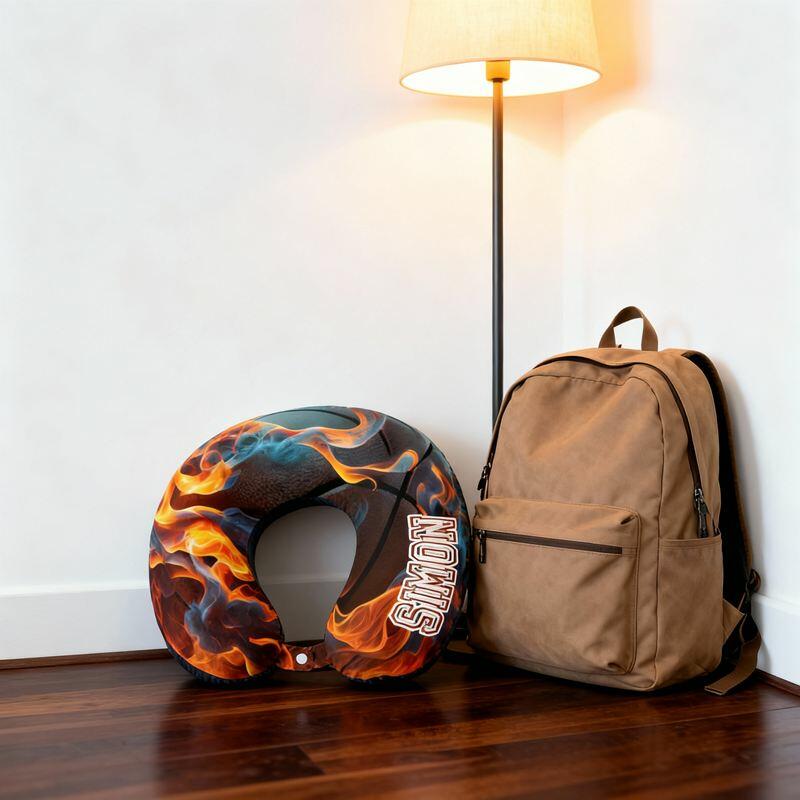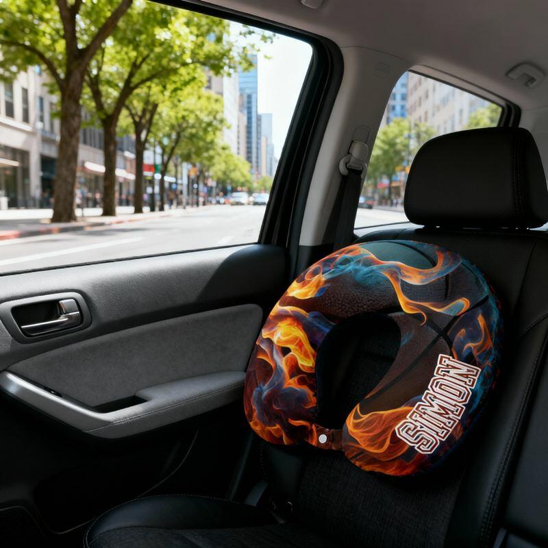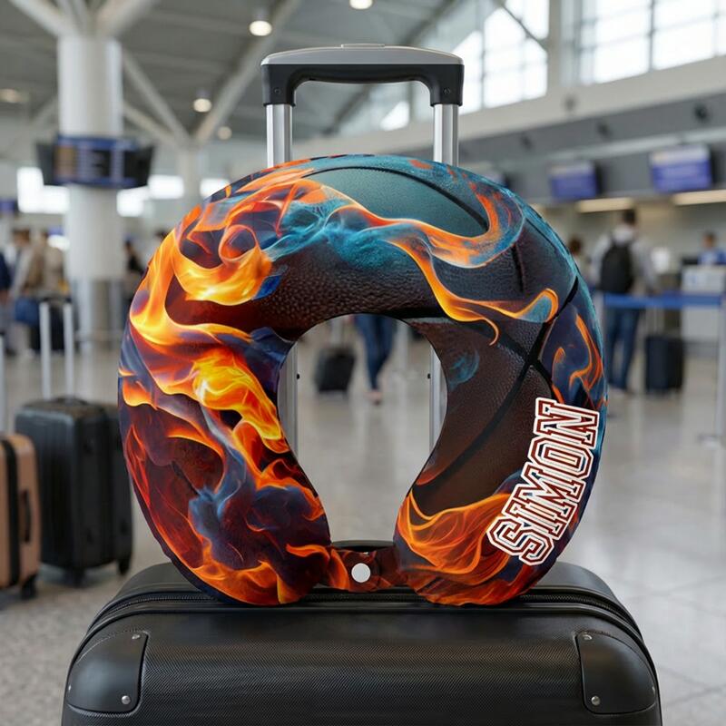 Personalized U-Shaped Neck Pillow Basketball On Fire Cool Design Gift for Sports Lover Friends