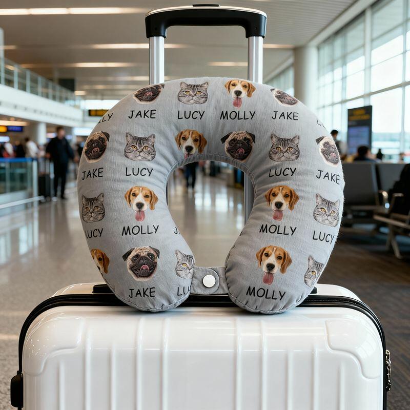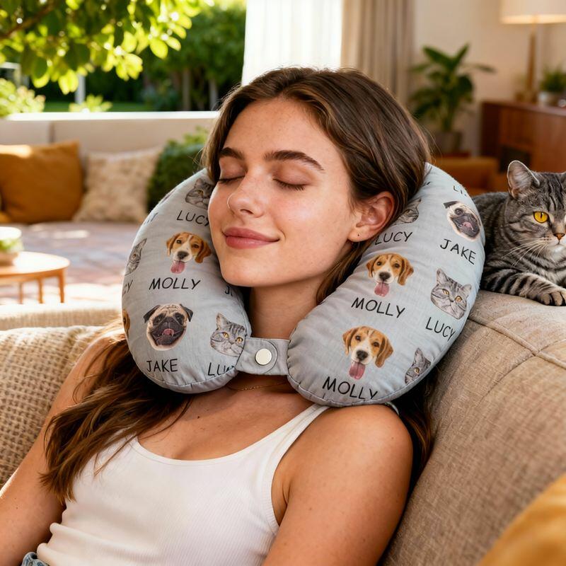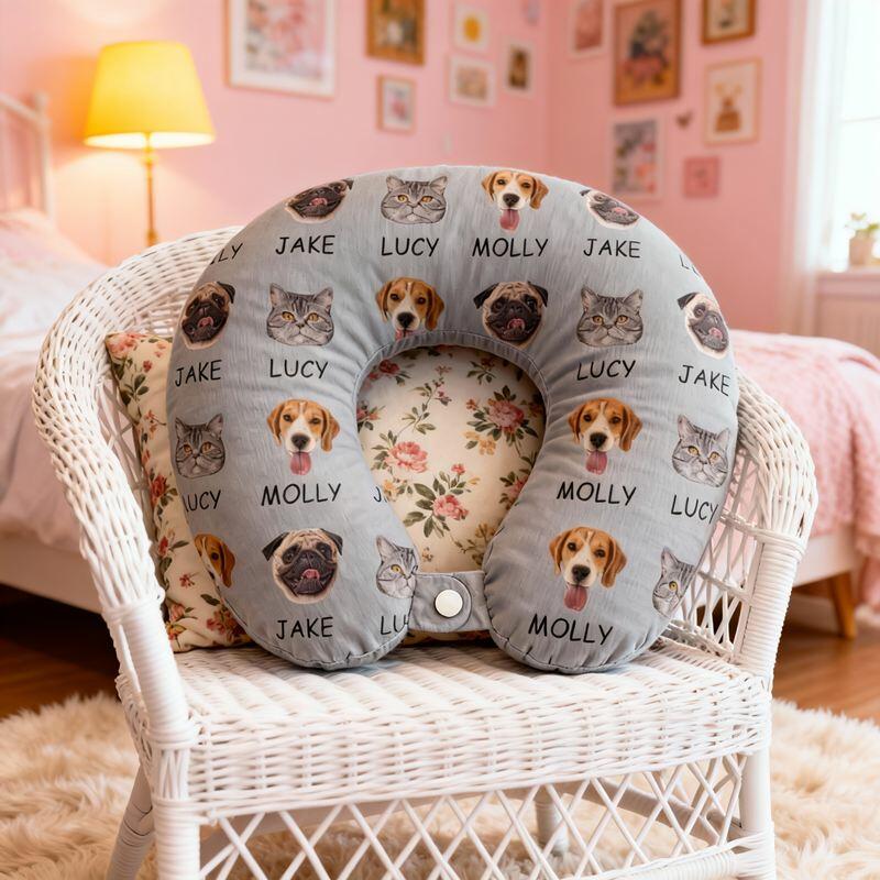 Personalized U-Shaped Neck Pillow Custom Photo and Name of Your Pets Perfect Gift for Pet Lover