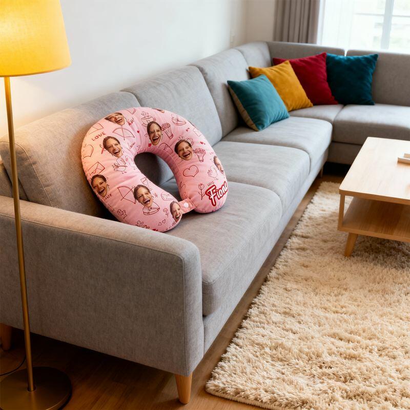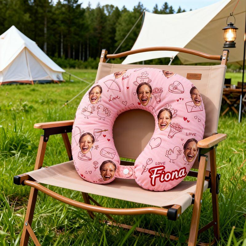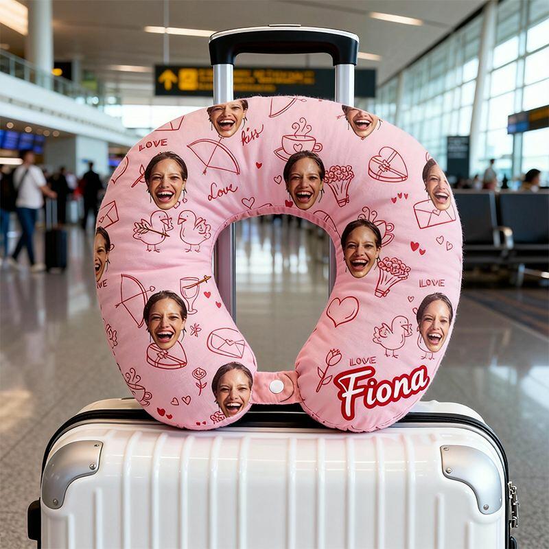 Personalized U-Shaped Neck Pillow Custom Photo Cute Little Pattern Design Adorable Gift for Her