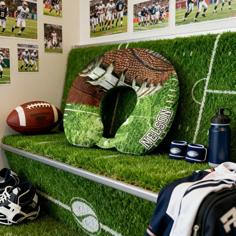 Personalized U-Shaped Neck Pillow Green Field Rugby Element Design Creative Gift for Friends