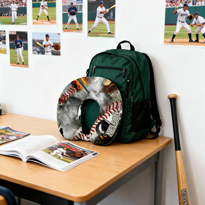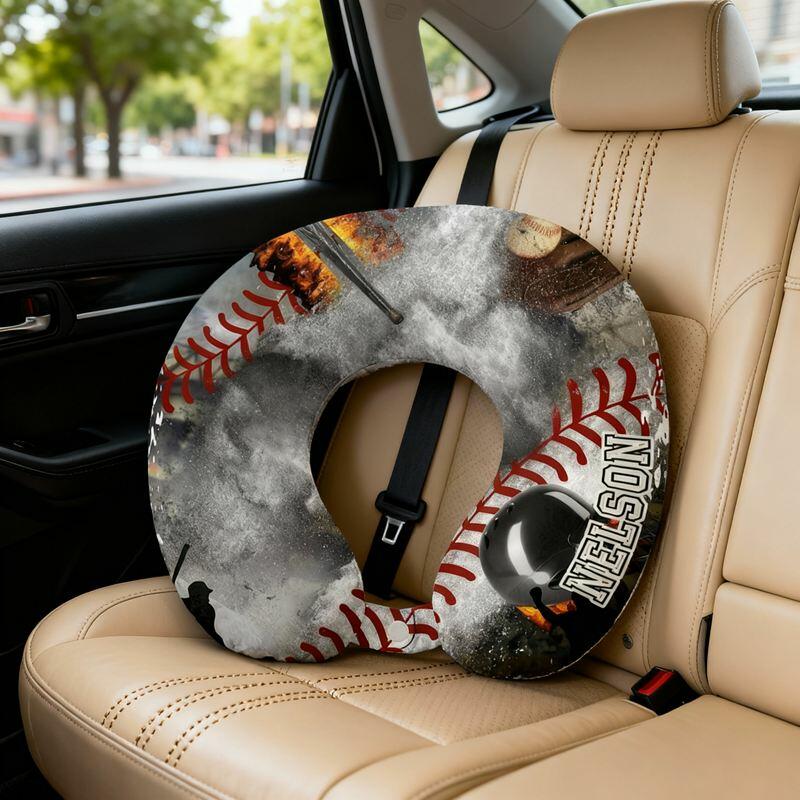 Personalized U-Shaped Neck Pillow Smoke-Filled Baseball Game Cool Gift for Sports Lover Friends
